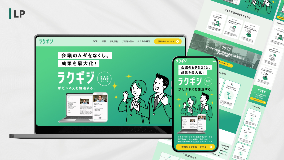 オンライン会議の音声をもとにしてAIが会話内容を文字起こし・要約し、議事録を自動で作成してくれるサービス「ラクギジ」。簡単な設定で議事録作成の手間から解放し、皆さんの仕事の生産性を大幅に向上させます。