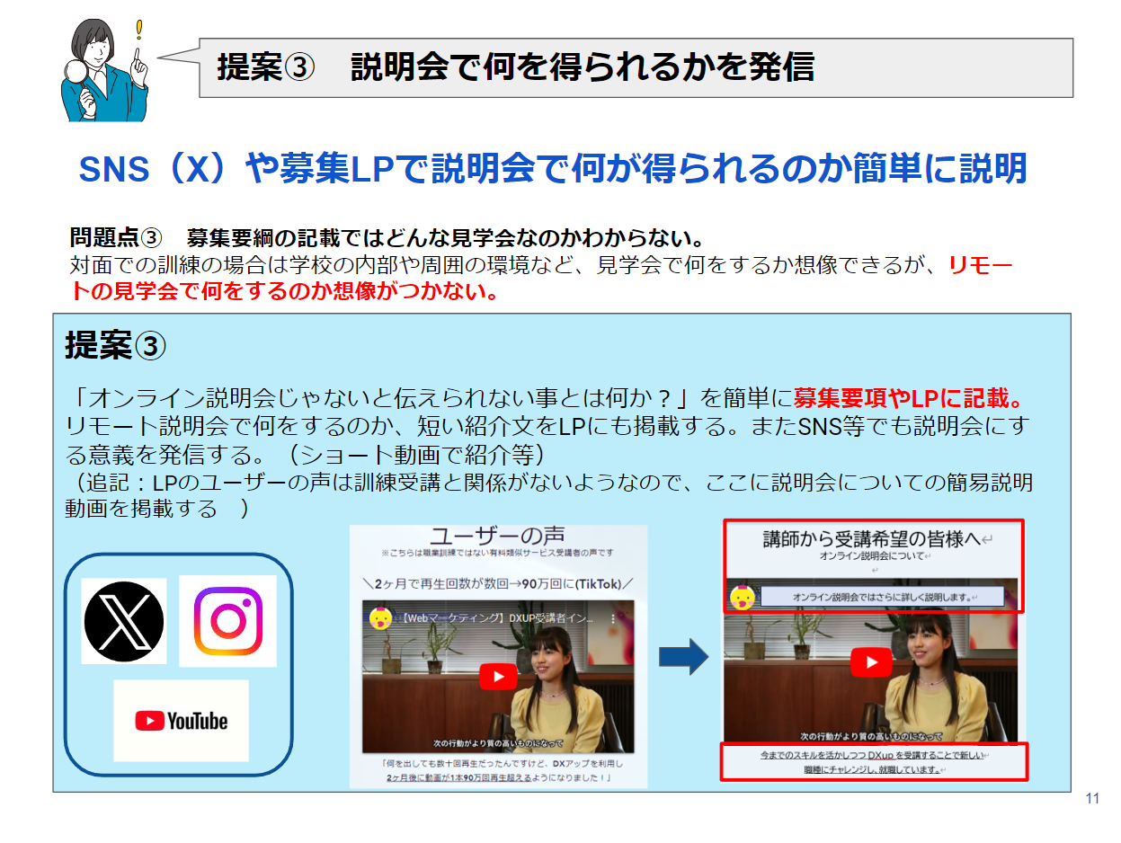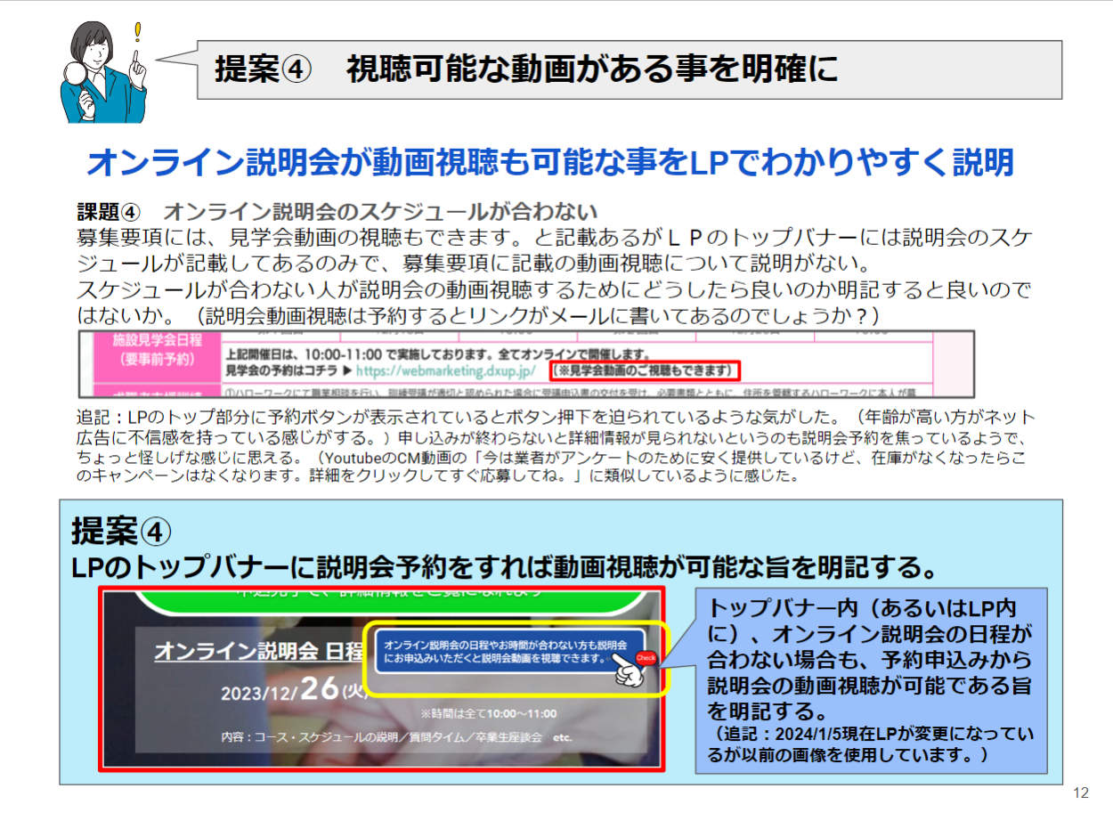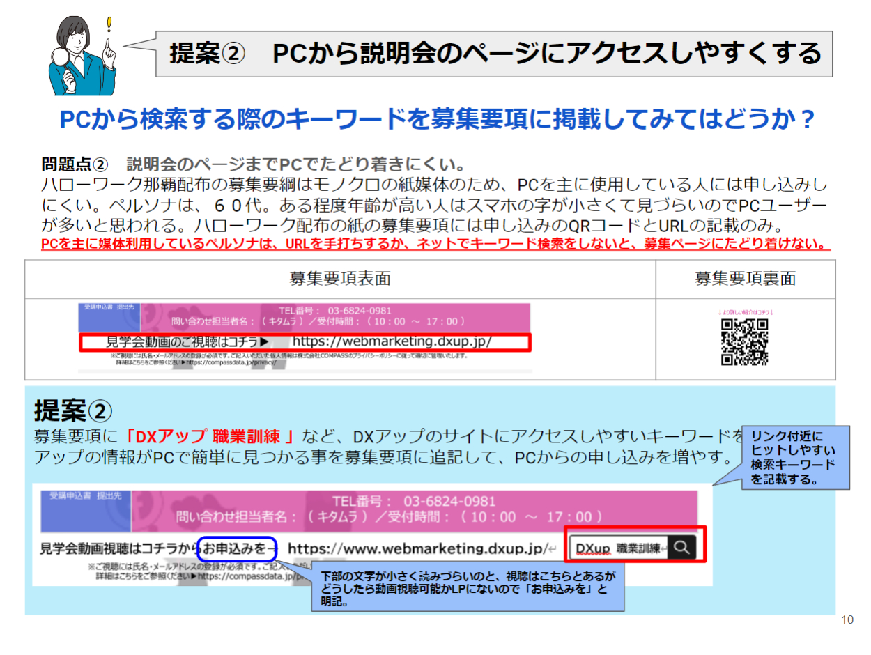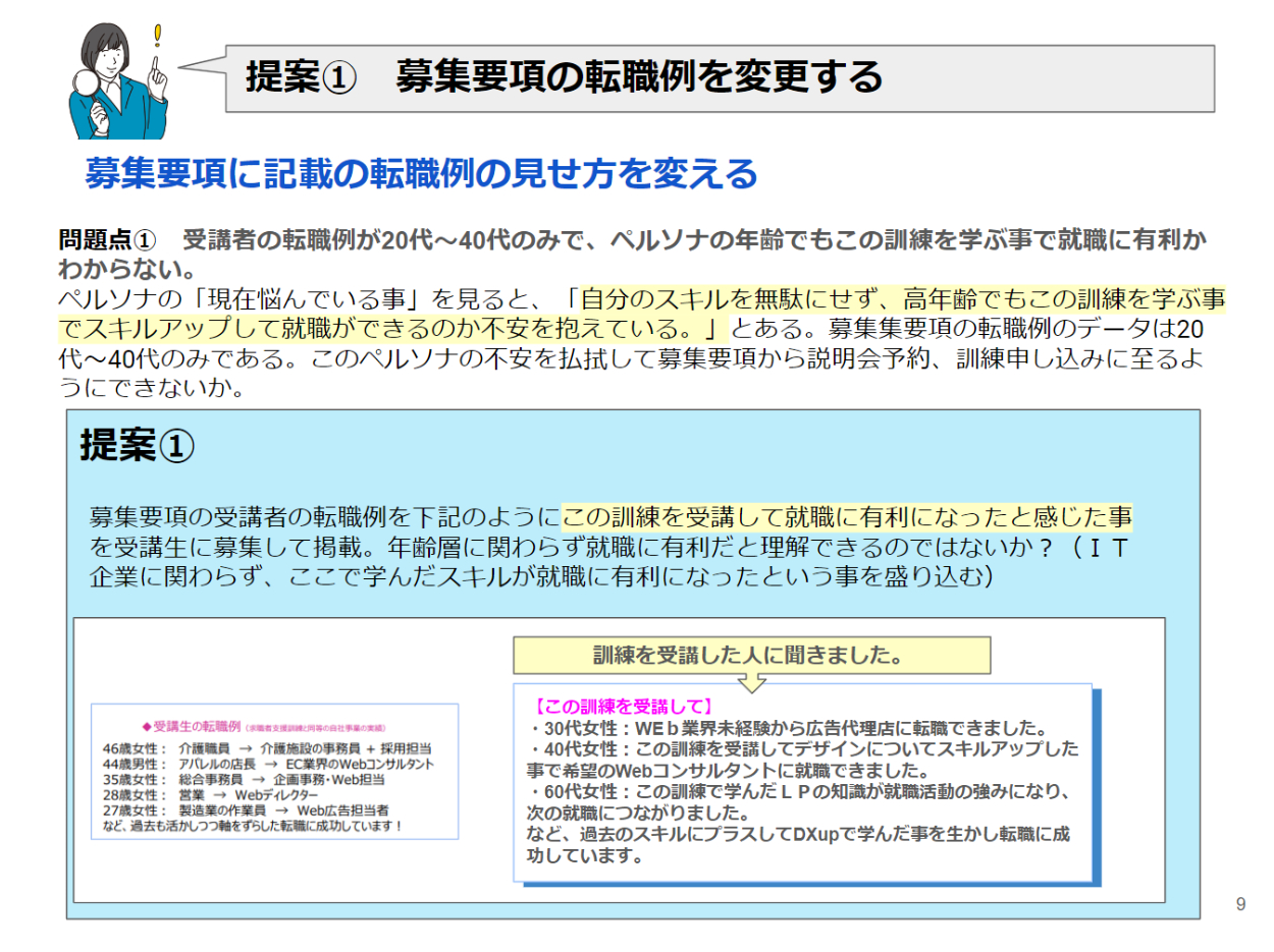 それに沿って「ここがダメだから直してください。」的な批判やダメ出しではなく「良さやメリット」をペルソナに伝えるための提案である旨をタイトルに盛り込みました。