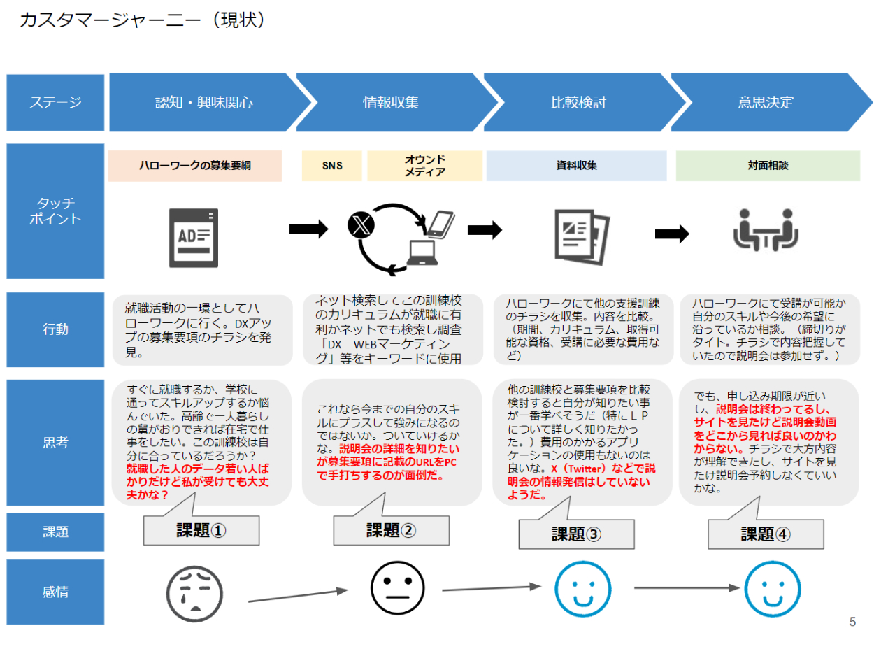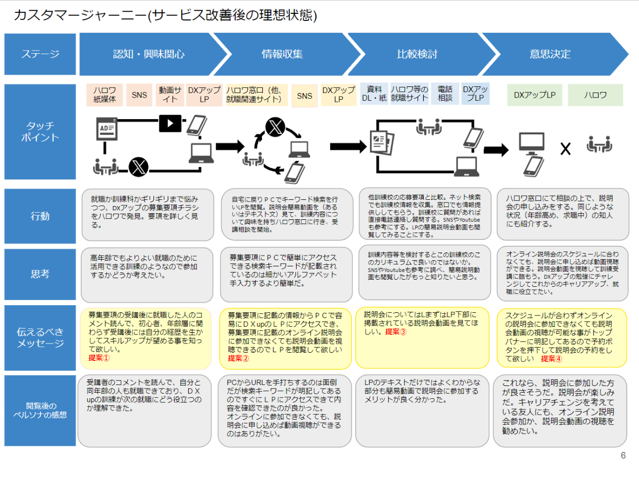 ・カスタマージャーニーをもう少し見やすくした方が良かったと思います。
