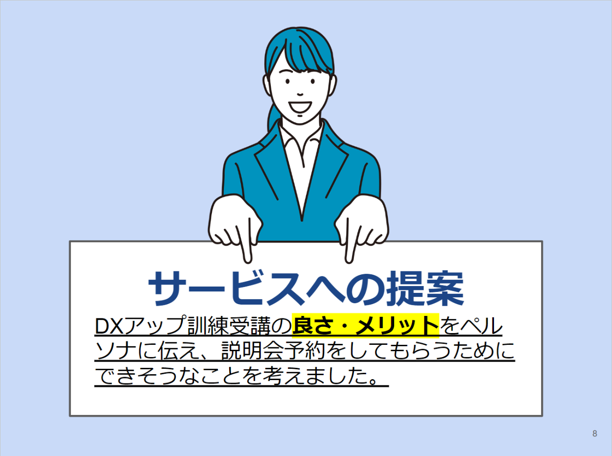 ・ペルソナに使用した人物イラストを入れて、イラストからも目的が理解しやすいようした。