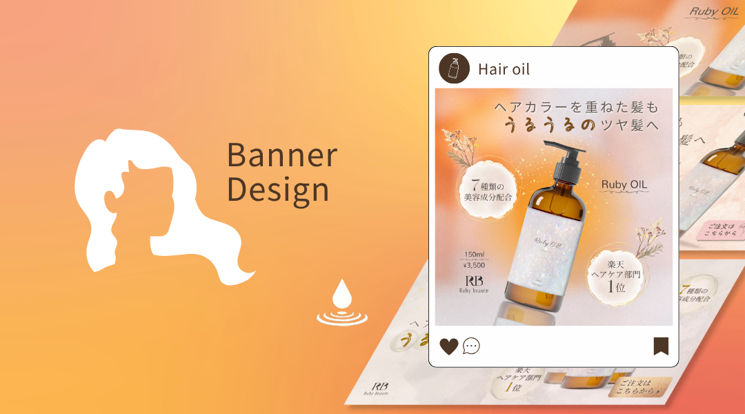 ヘアオイルと背景がマッチした3パターン作成しました。