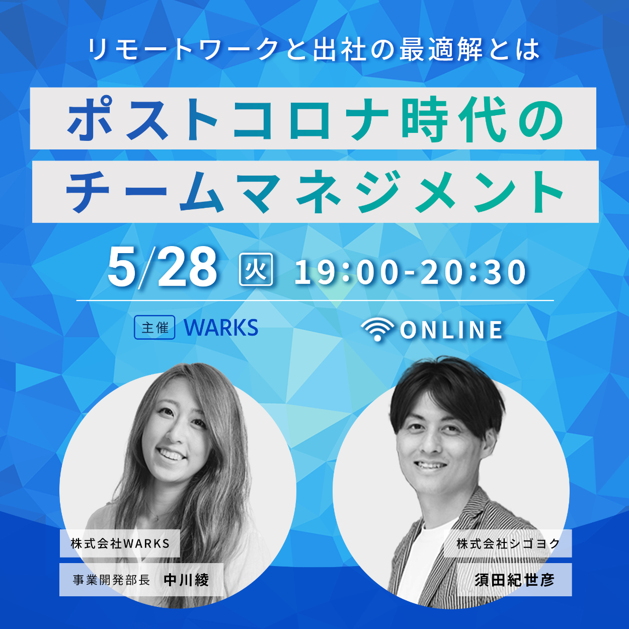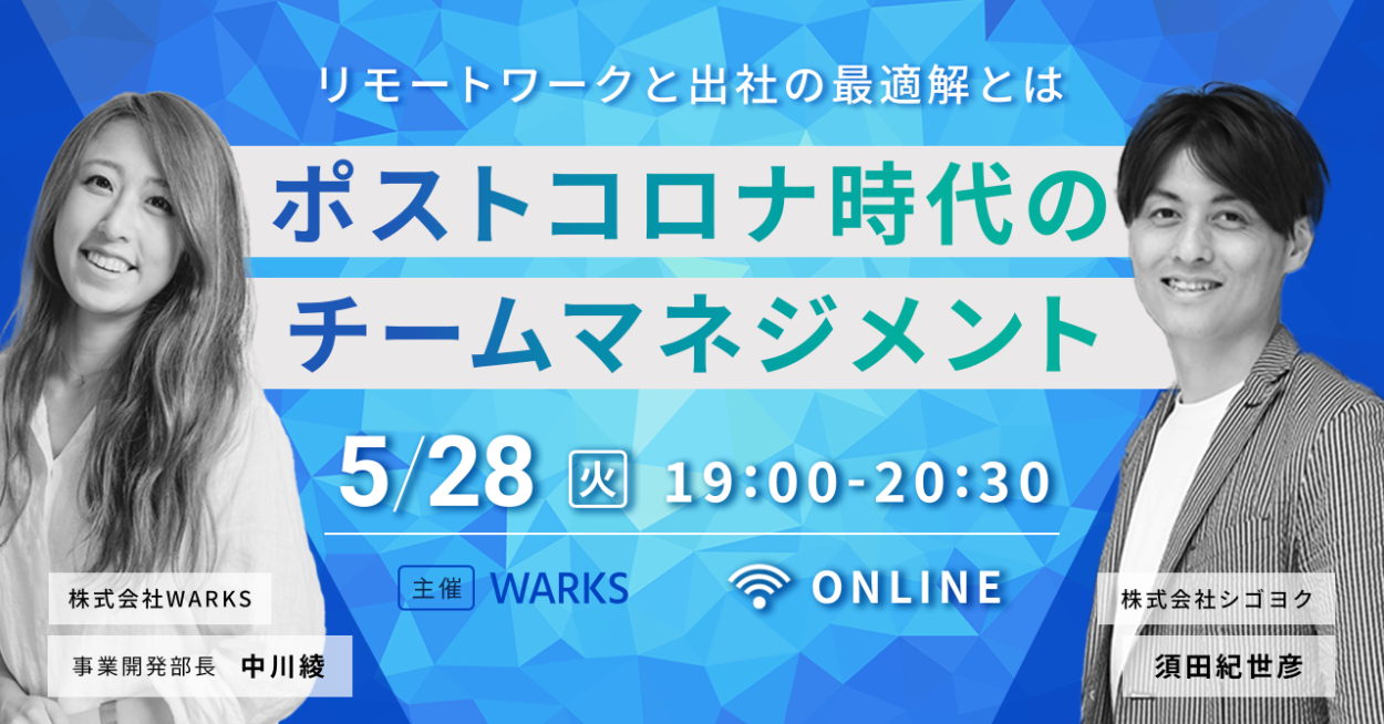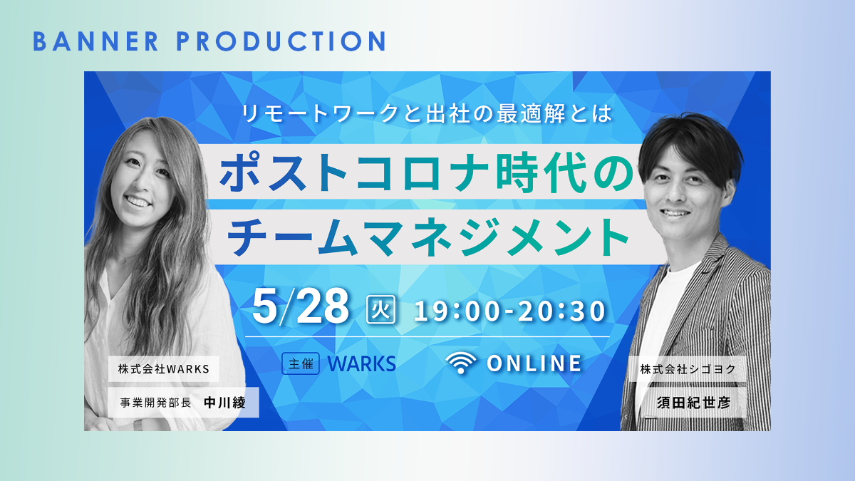 ・制作目的:企業に対して新時代のワークスタイルコンサルティングを行う株式会社WARKSがパートナー企業である株式会社シゴヨクと共同主催するオンラインセミナーの告知。バナーを見たターゲットがイベントに申し込みをする。