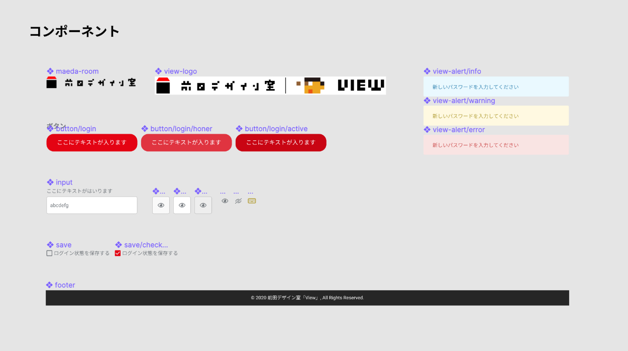 ボタン挙動時のスタイルやコンポーネントも作成しました。