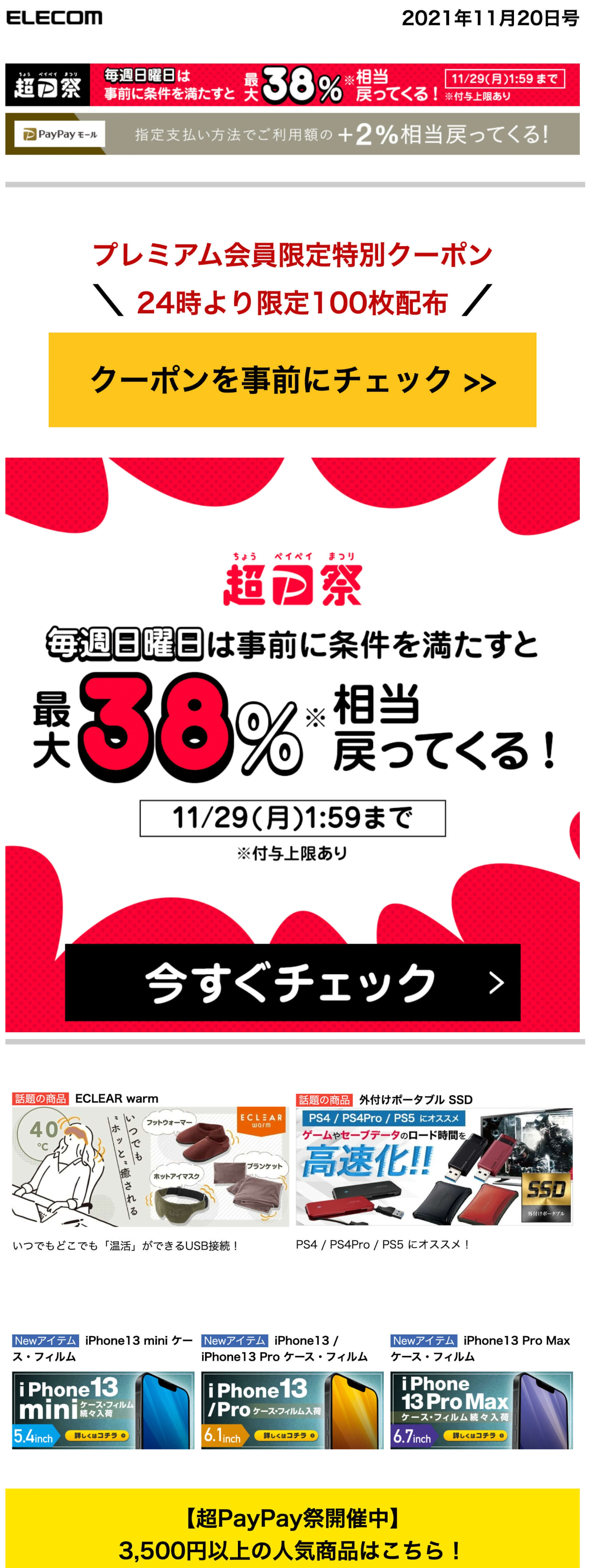 1.【事前告知】24時より限定100枚クーポン配布します![ELECOM☆NEWS]