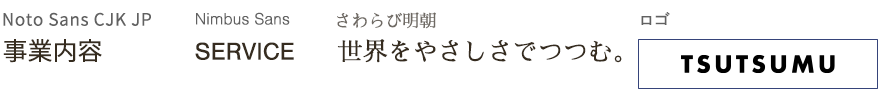 欧文はNoto Sansに馴染みやすくやさしさが伝わるようなフォントを使用