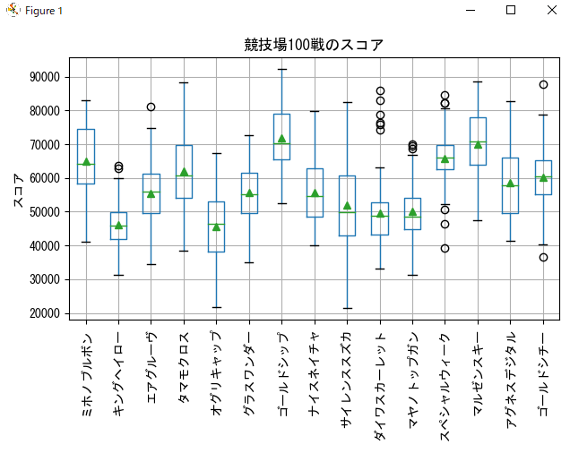 記録した数値を統計的に分析し、平均、分散、四分位点などを求めました。以下は箱ひげ図の形式で結果をまとめた図です。