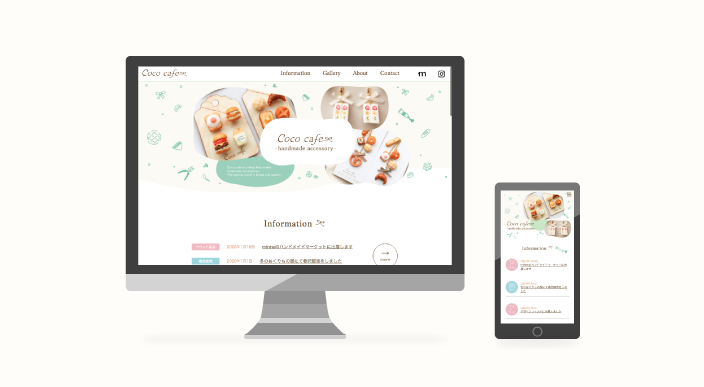 minneでミニチュアのパンやお菓子などをモチーフとしたハンドメイドアクセサリーを販売している友人のwebサイトを制作しました。