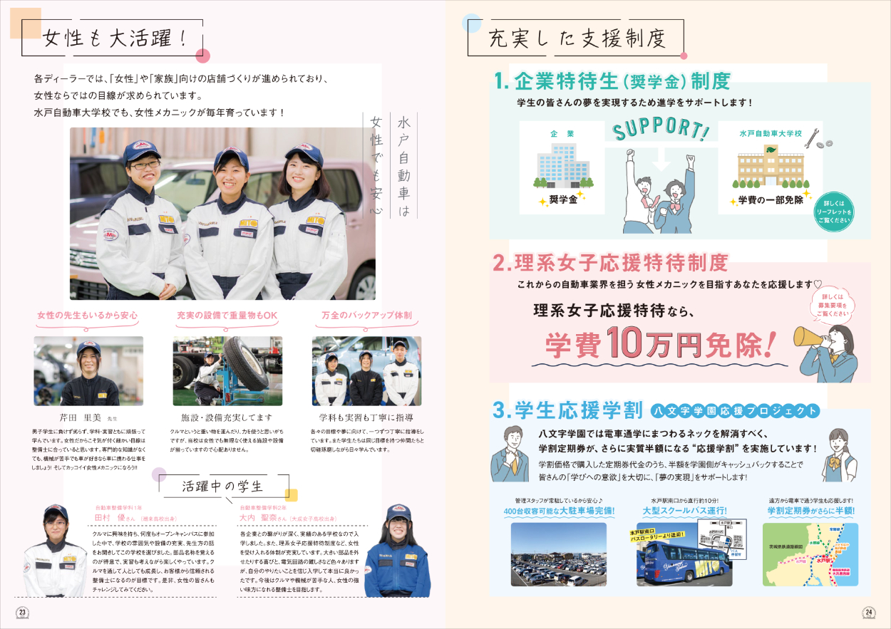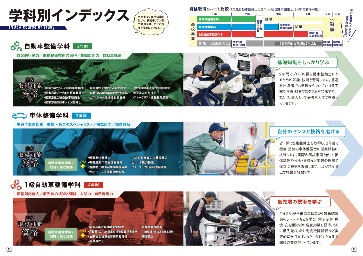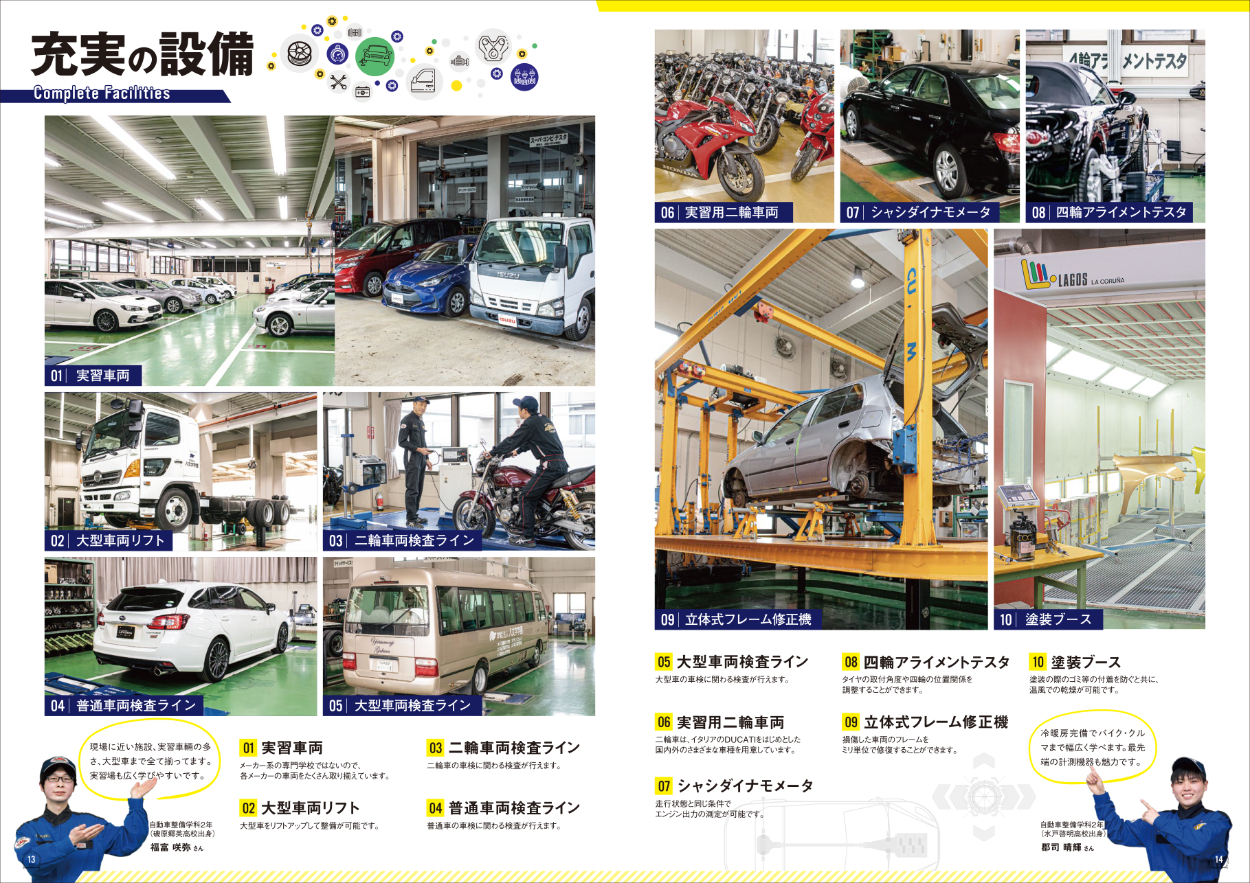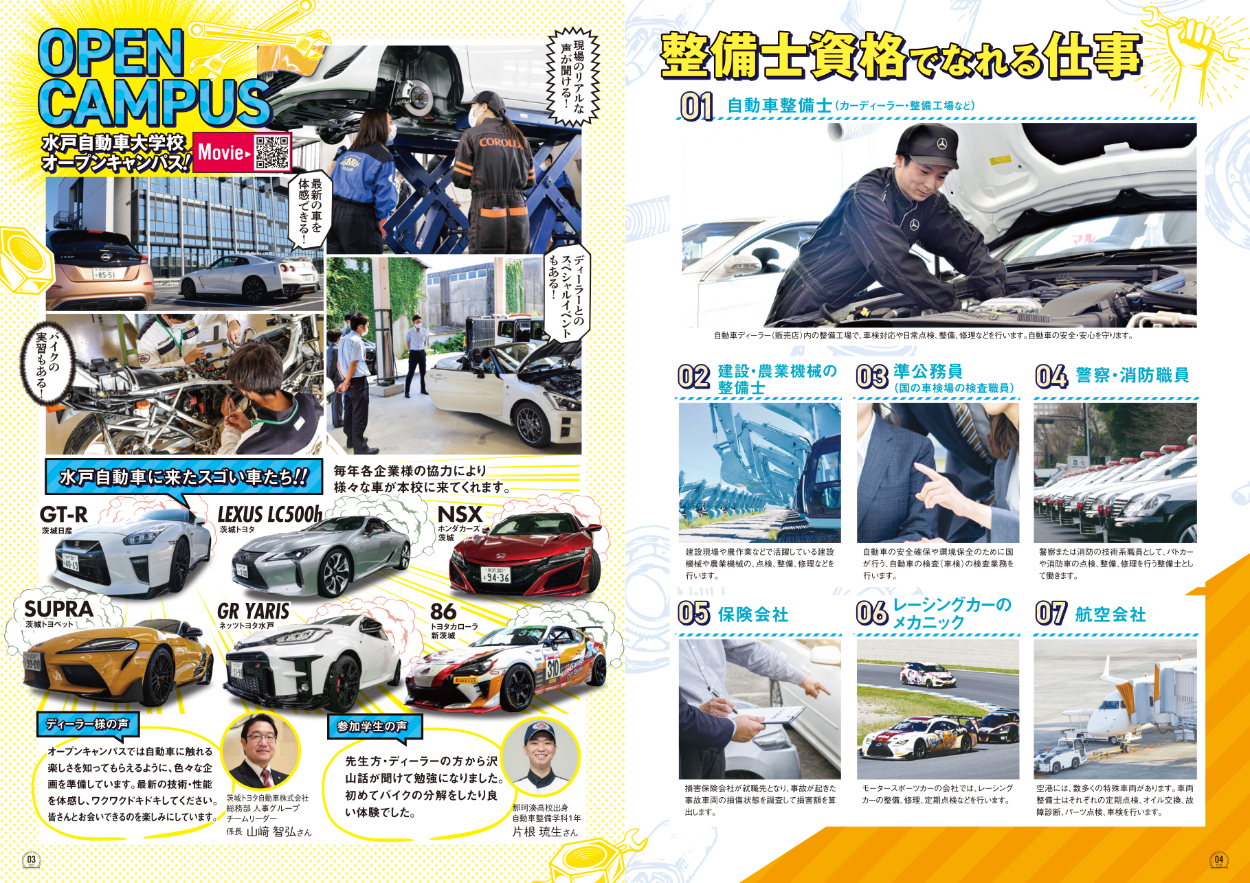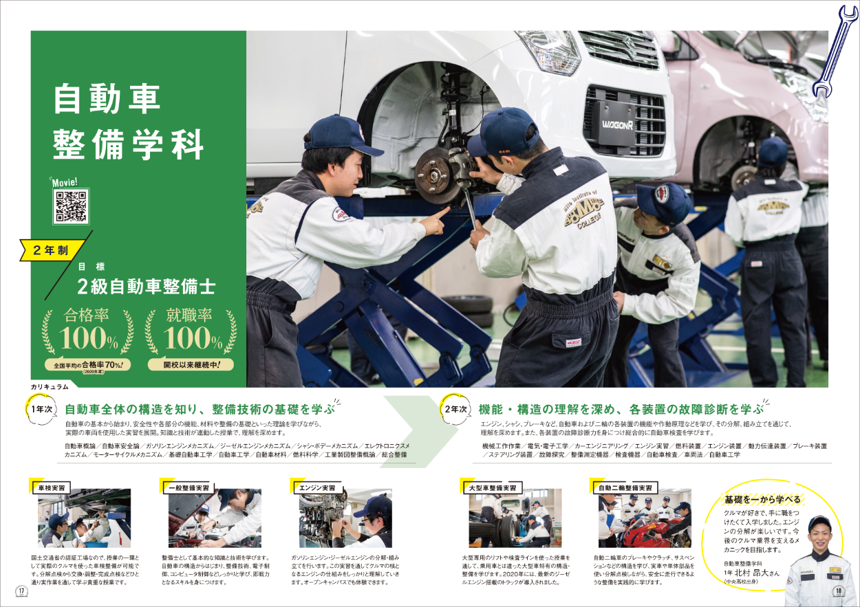専門学校案内パンフレット Lighd グラフィックデザイナー OVERVIEW A4 26ページ 自動車整備士専門学校のパンフレット制作を担当いたしました。 漫画・アニメ風な表現を取り入れたいとの要望に応えるよう努めました。 YEAR 2022 - 2022