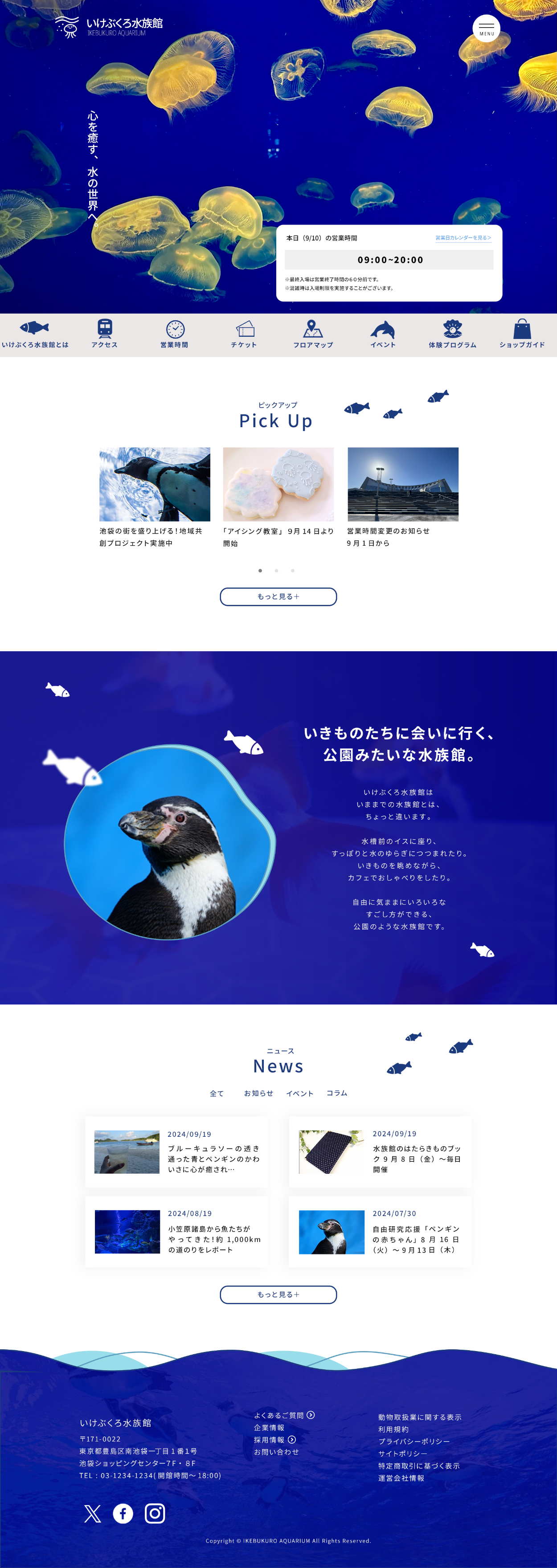 ・水族館がもつ美しさを表現するため、美しい青と白を基調とした。