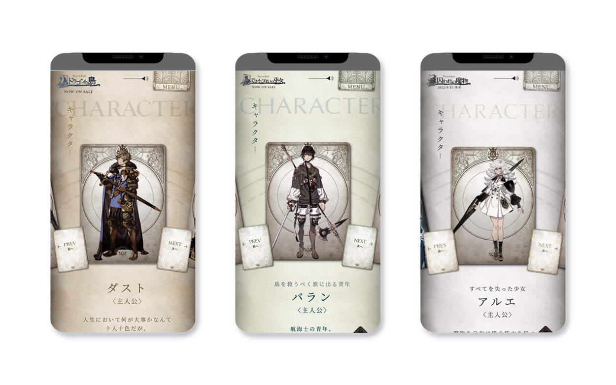スクウェア・エニックス様のRPG「Voice of Cards 」シリーズのサイト制作お手伝いしました。