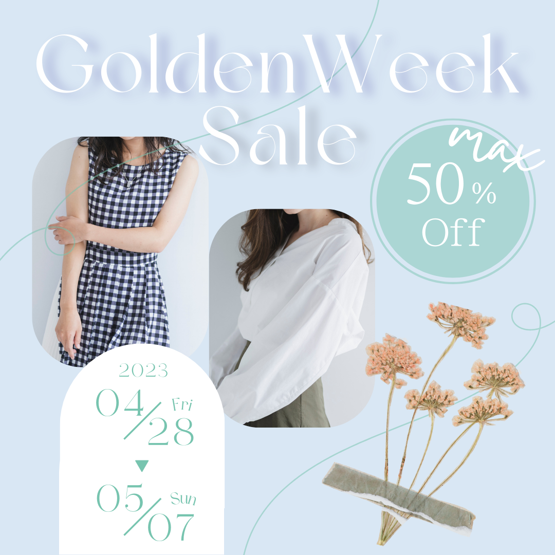 ゴールデンウィークセールなので初夏を感じさせるブルーを全体的に使用し、フェミニンなスタイルが好きな女性をイメージして淡い色合いに仕上げました。