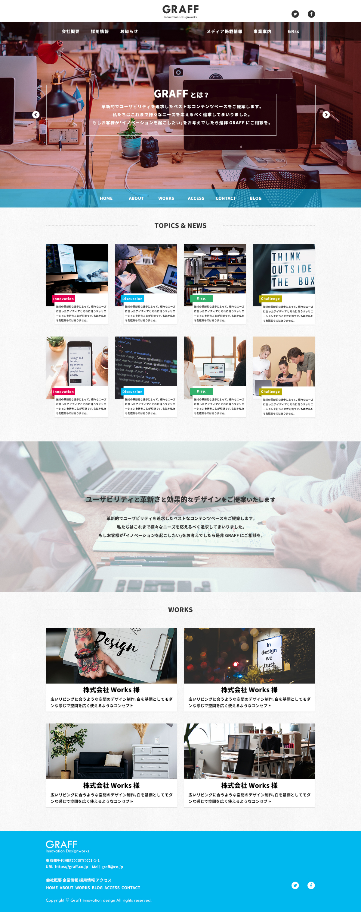 ①架空のデザイン制作会社のサイト yui WEBデザイナー/エンジニア志望 OVERVIEW 架空のデザイン制作会社のサイトをイメージして制作しました。制作環境:Mac/Photoshop CC 2019 制作時間:約5時間 YEAR 2019
