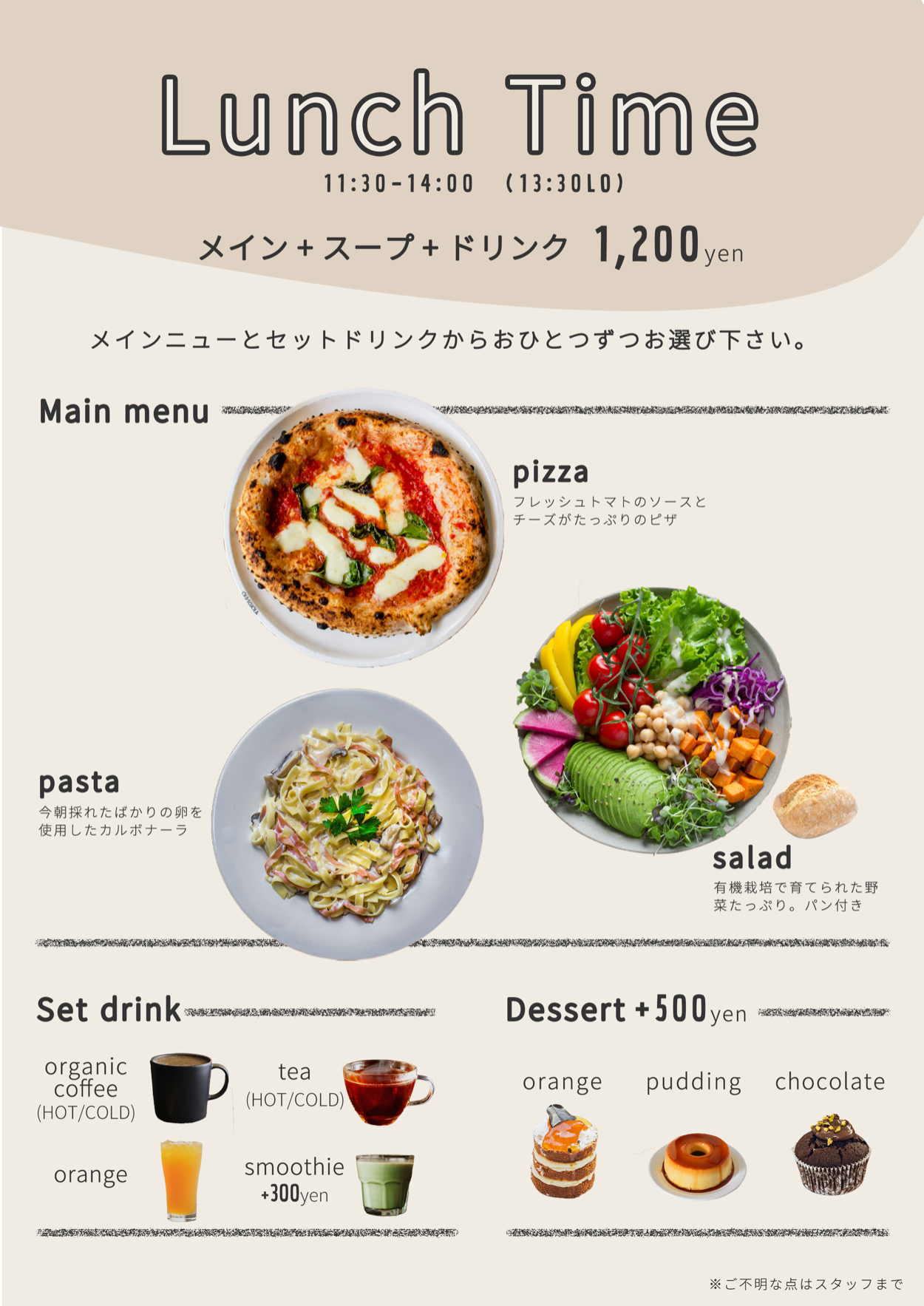 ”日々、忙しい女性に食で元気になってほしい”そんな思いから食材にこだわったカフェをオープン。カフェで使用するランチメニューです(架空)