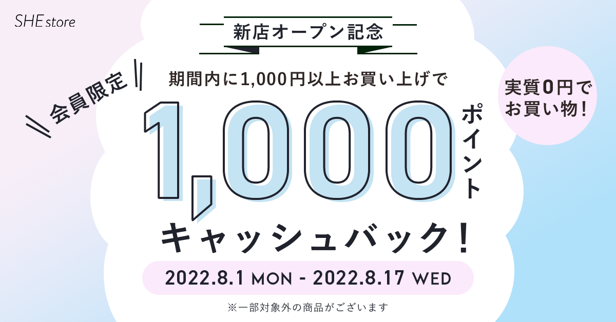 - 期間内に1000円以上お買い上げで会員限定1000ptキャッシュバック!
