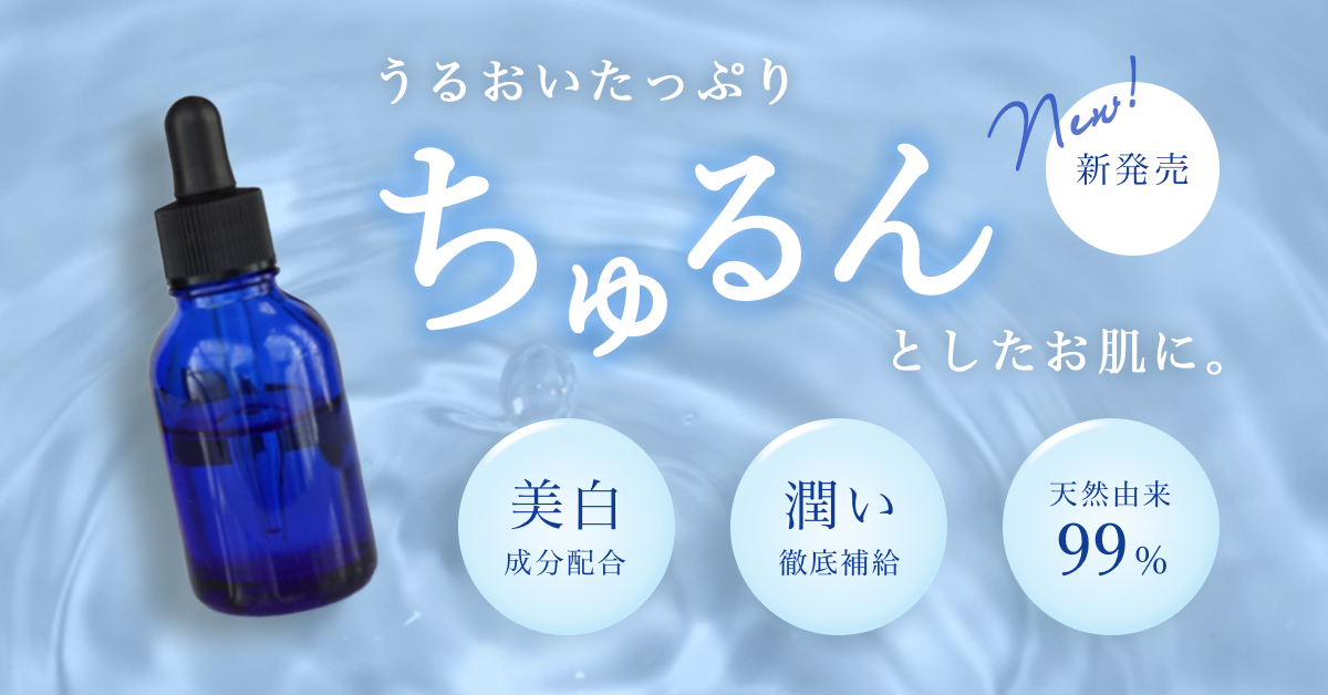 - テキストに光彩を加え美容液の高級感や美白なイメージを彷彿とさせる