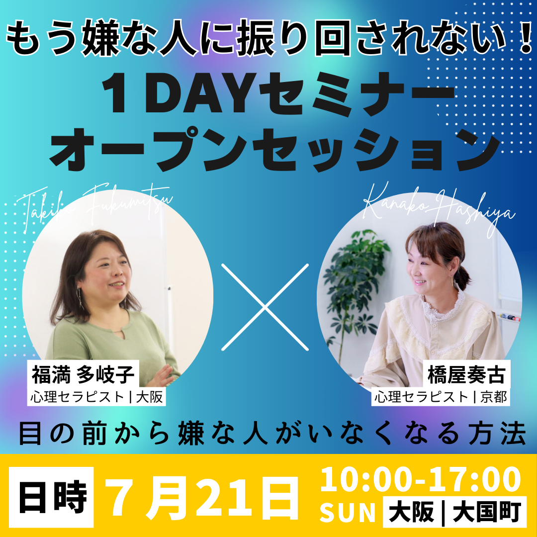 【バナー制作】大阪心理セミナー(嫌な人に振り回されない方法) KIKI ROCK イラストレーター・フリーランスWEBデザイナー ▼依頼元:一般社団法人日本リトリーブサイコセラピー協会心理セラピスト 福満多岐子様・橋屋奏古様▼デザイン▼セミナーバナー3種類で提供(ブログ記事トップ・インスタ・サイドバナー)