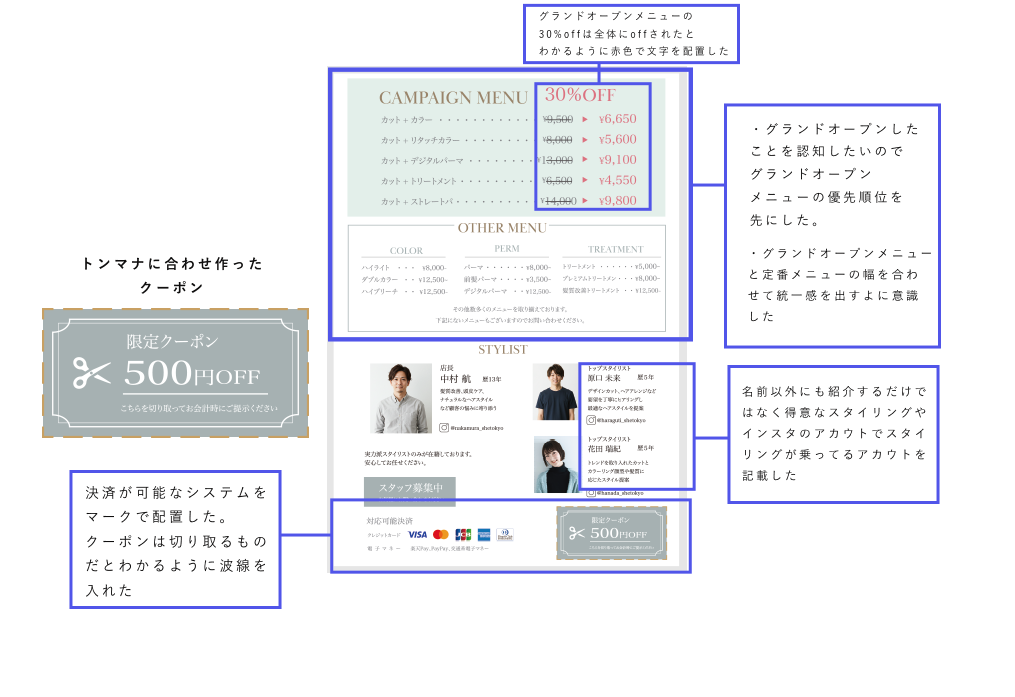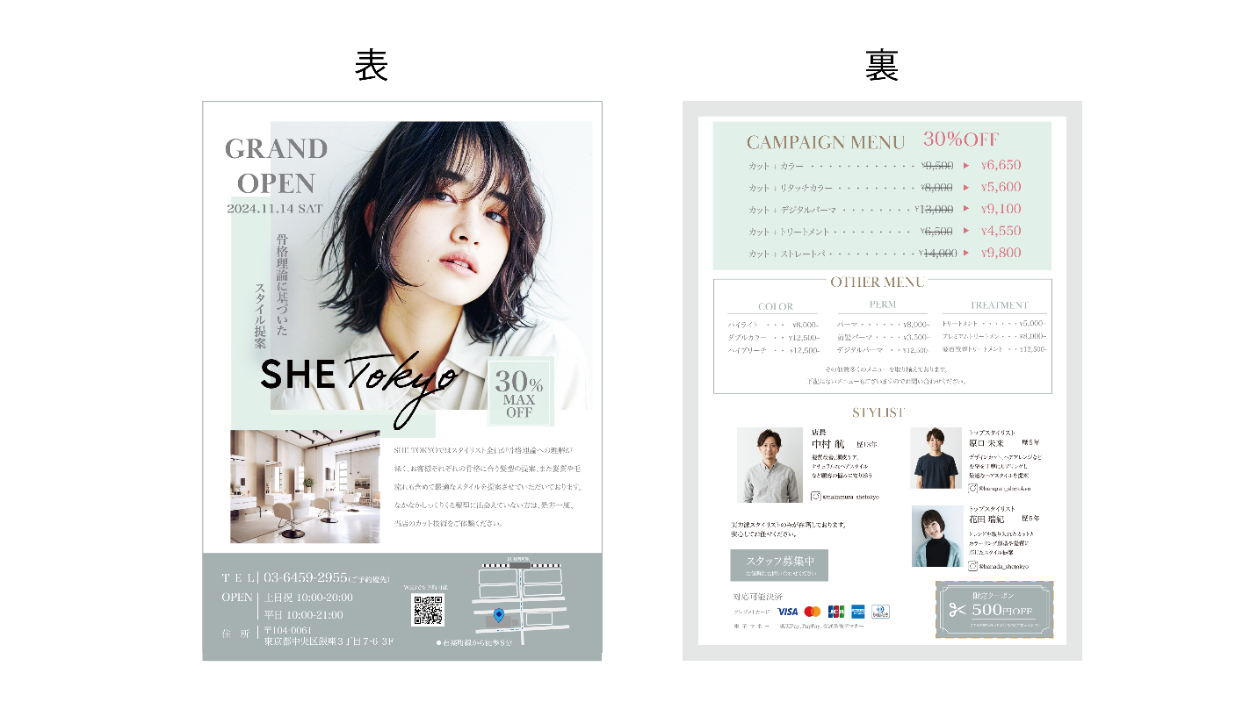架空美容室のグランドオープン告知のフライヤーデザイン制作