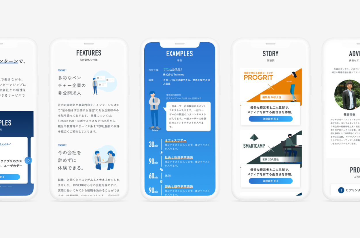 ベンチャー思考の転職者向け、転職サービス「DIVERK」のサービス紹介LPのデザイン制作(個人案件)