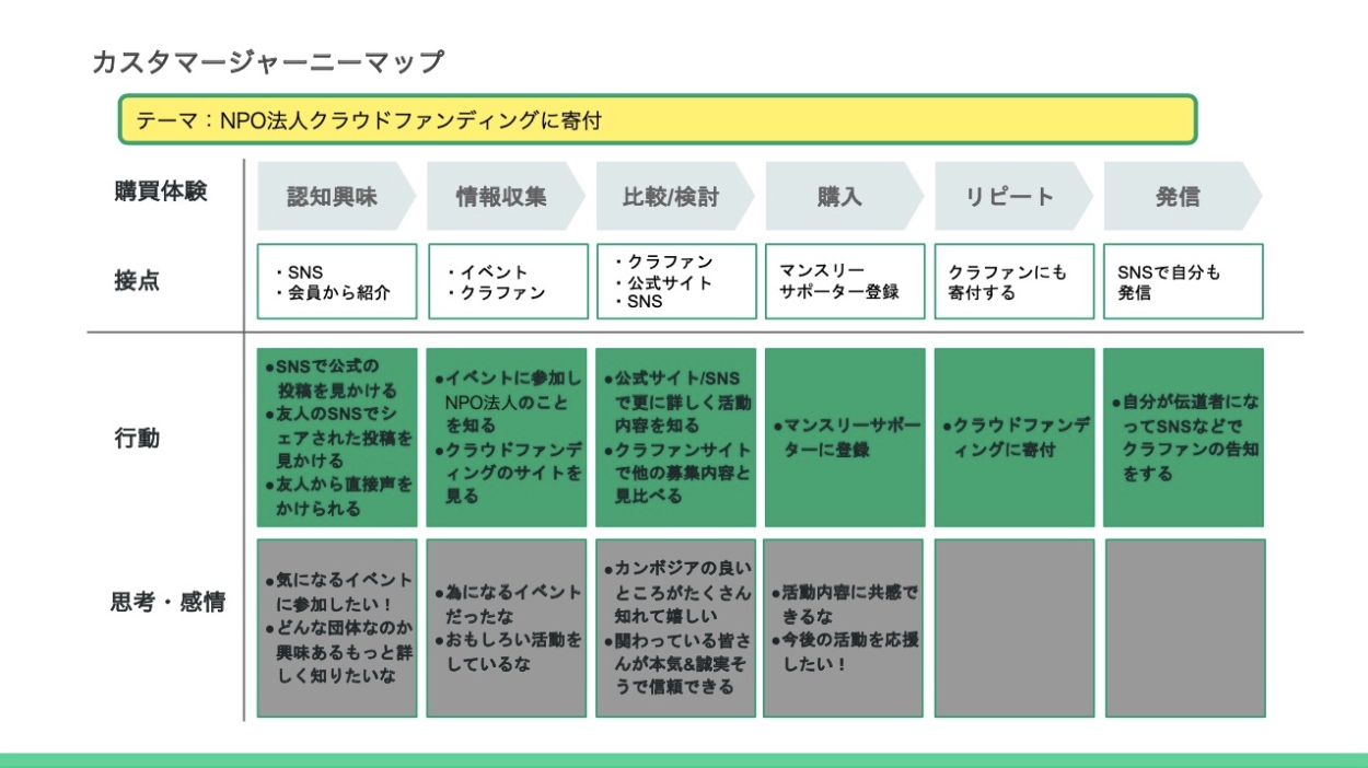 今回は、某NPO法人の【カスタマージャーニーマップ】を作成しました。