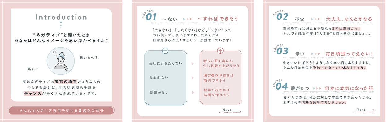 【SHElikes SNSクリエイティブ制作(コンペ採用作品)】 思考のポジティブ変換8選