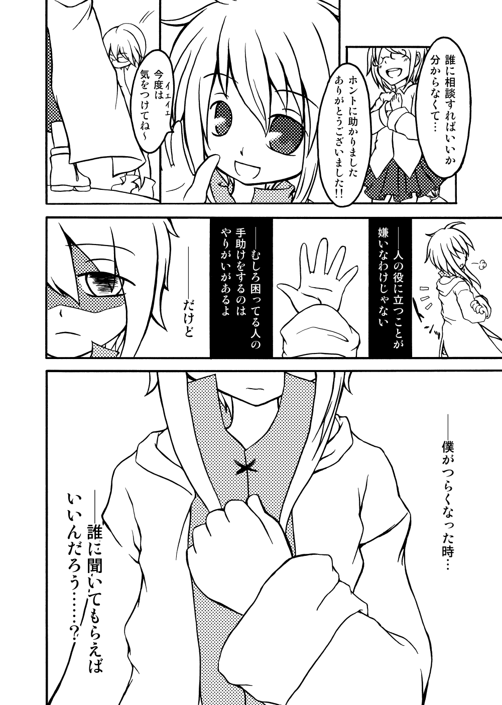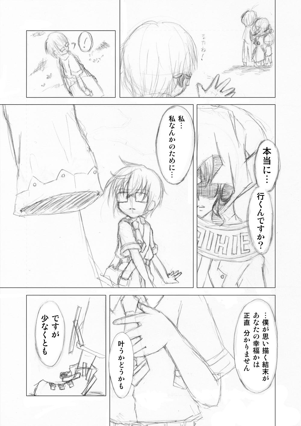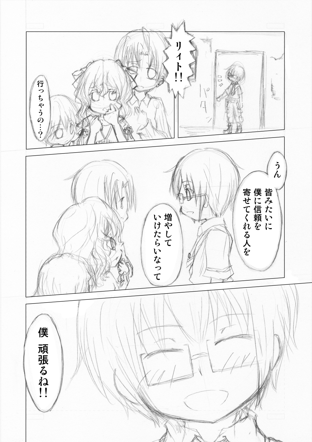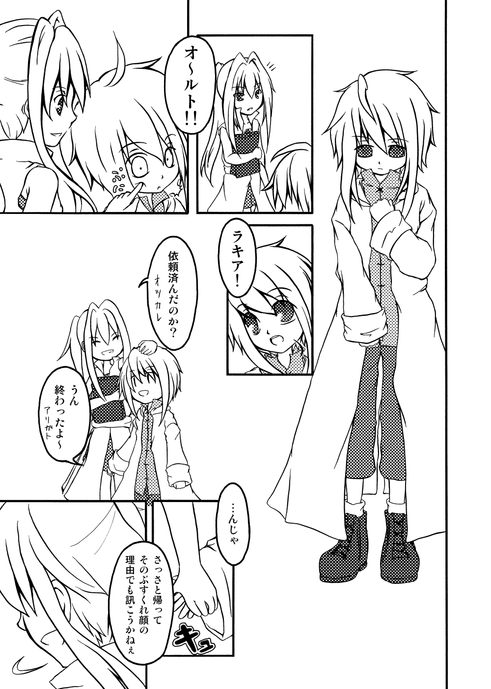 コンセプト:自分が創ったキャラクターと友人のキャラクターの接点を描いたマンガ。自費出版した本には友人が描いてくれた友人のキャラクター視点のマンガも掲載していた。