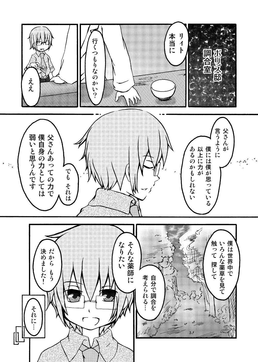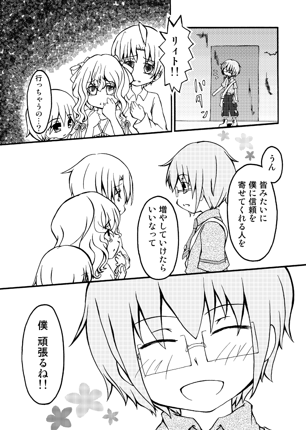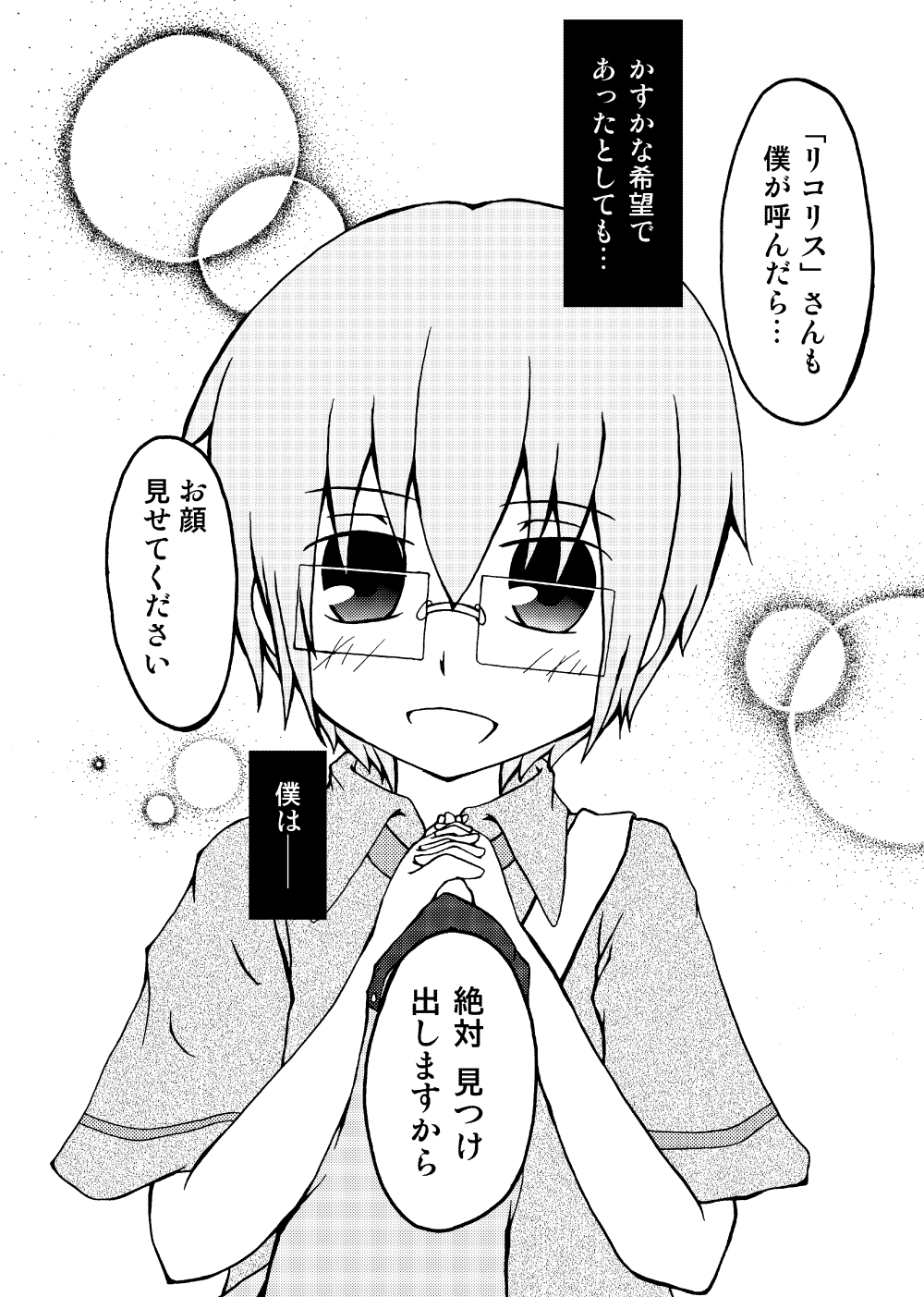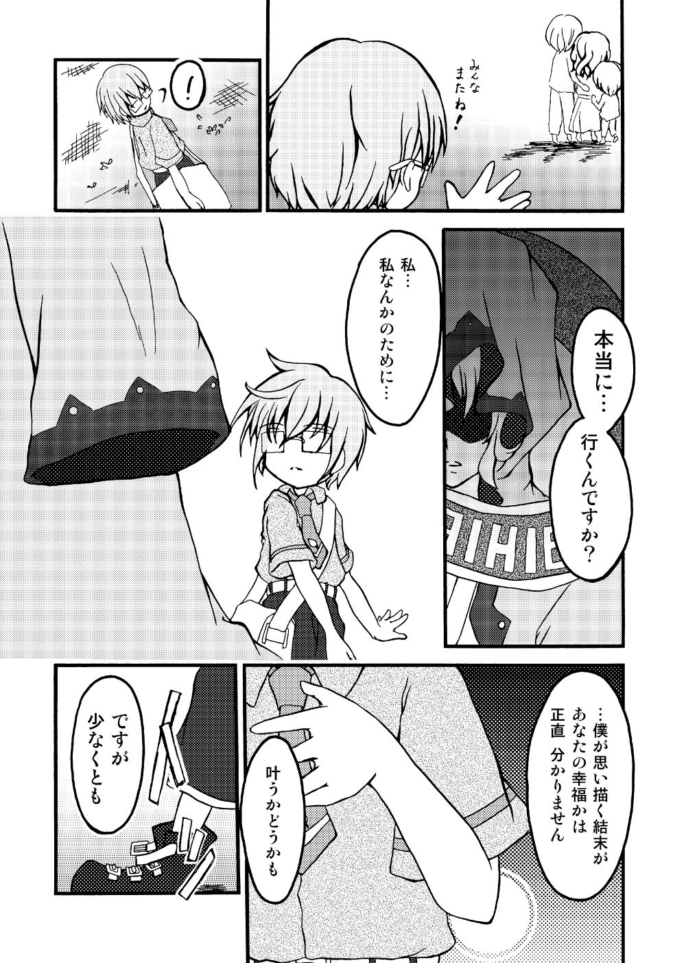 コンセプト:自分が創ったキャラクターと友人のキャラクターの接点を描いたマンガ。自費出版した本には友人が描いてくれた友人のキャラクター視点のマンガも掲載していた。