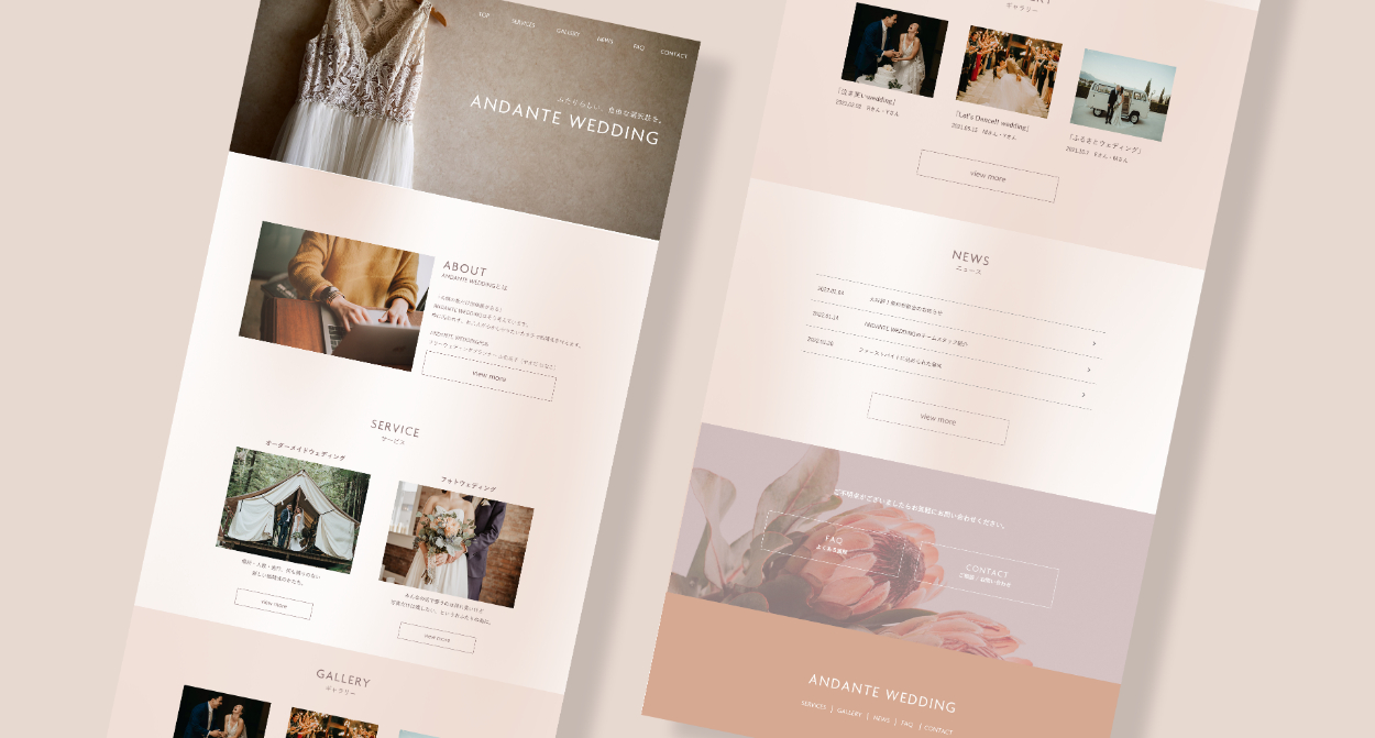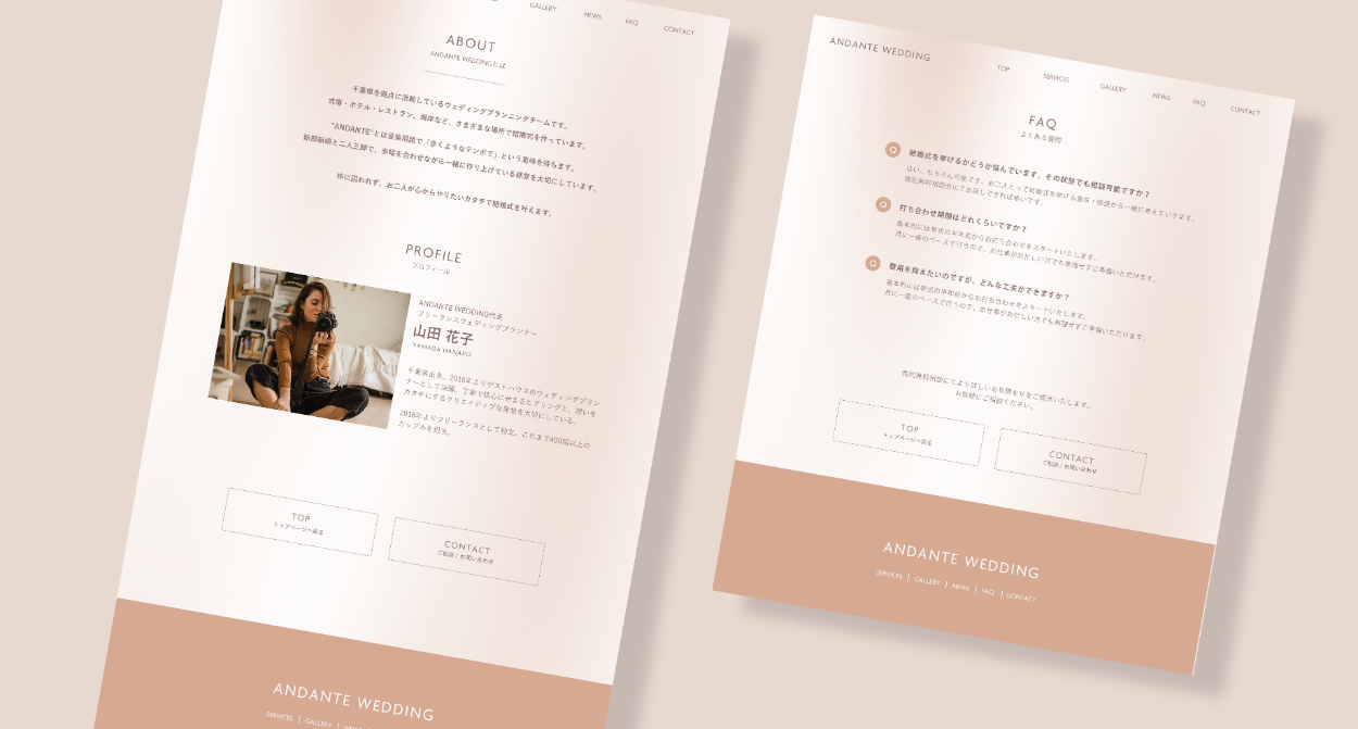 【自主制作】架空のフリーウェディングプランナーのHPを作成しました 担当範囲:デザイン/WordPress実装
