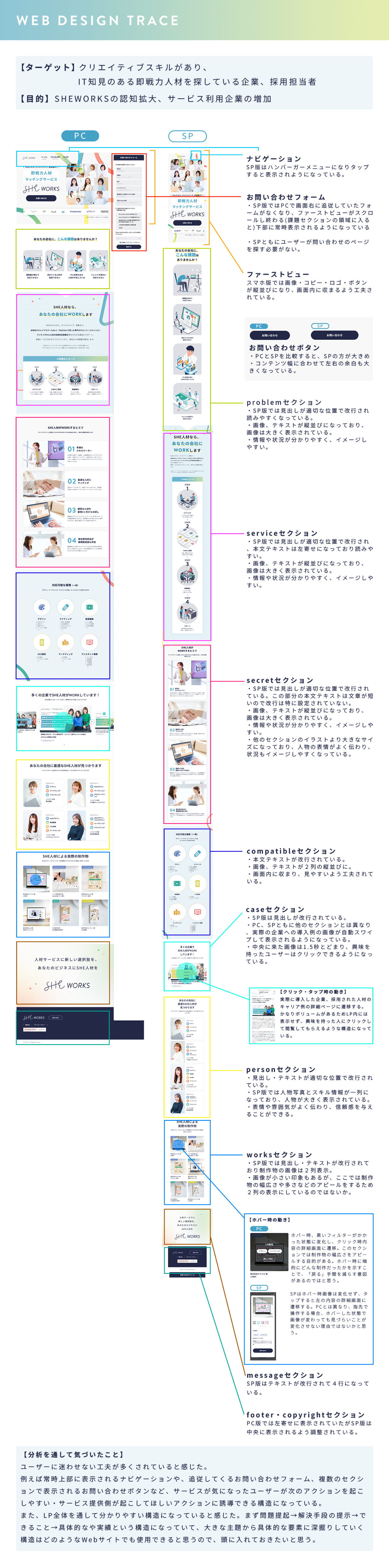 人材マッチングサービス「SHE WORKS」のLPデザイントレースを行いました。