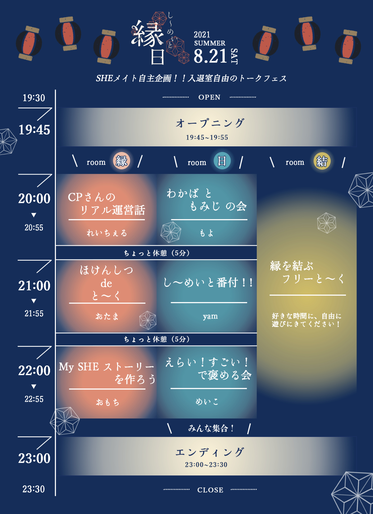 【自主企画・自主制作】イベントタイムテーブル NANA KITAGAWA 旅する保育士 webデザイナー イベントのテーマが「縁日」縁日の楽しくもあり、どこか懐かしく温かみのあるデザインを意識しました。