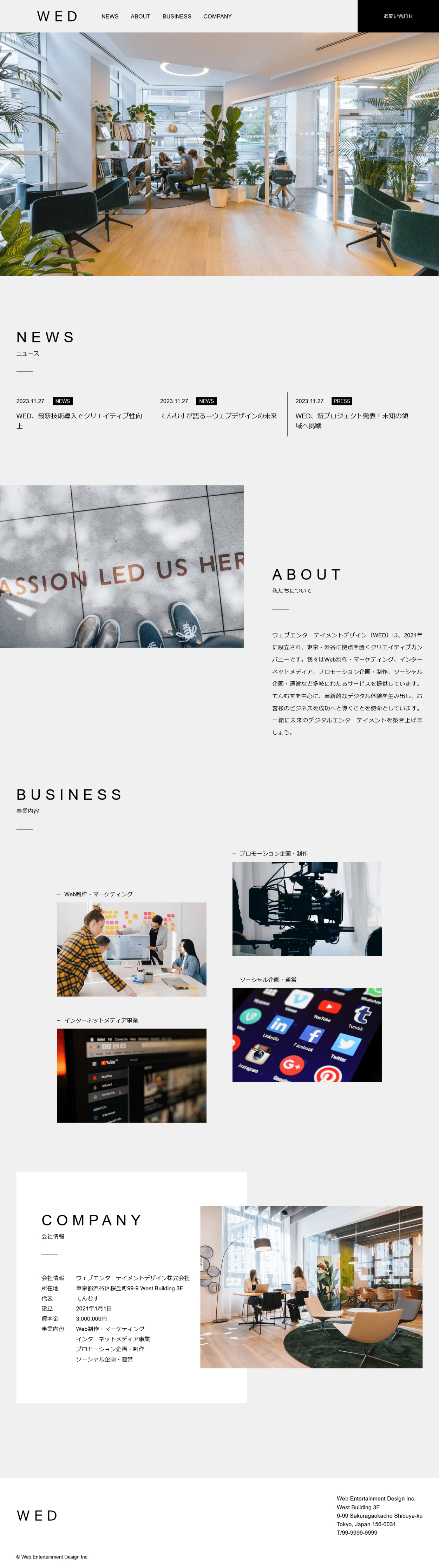 ・トップページニュースセクションは、最新の投稿記事を3つ表示しています。タグには管理ページで設定したカテゴリー名が反映されます。