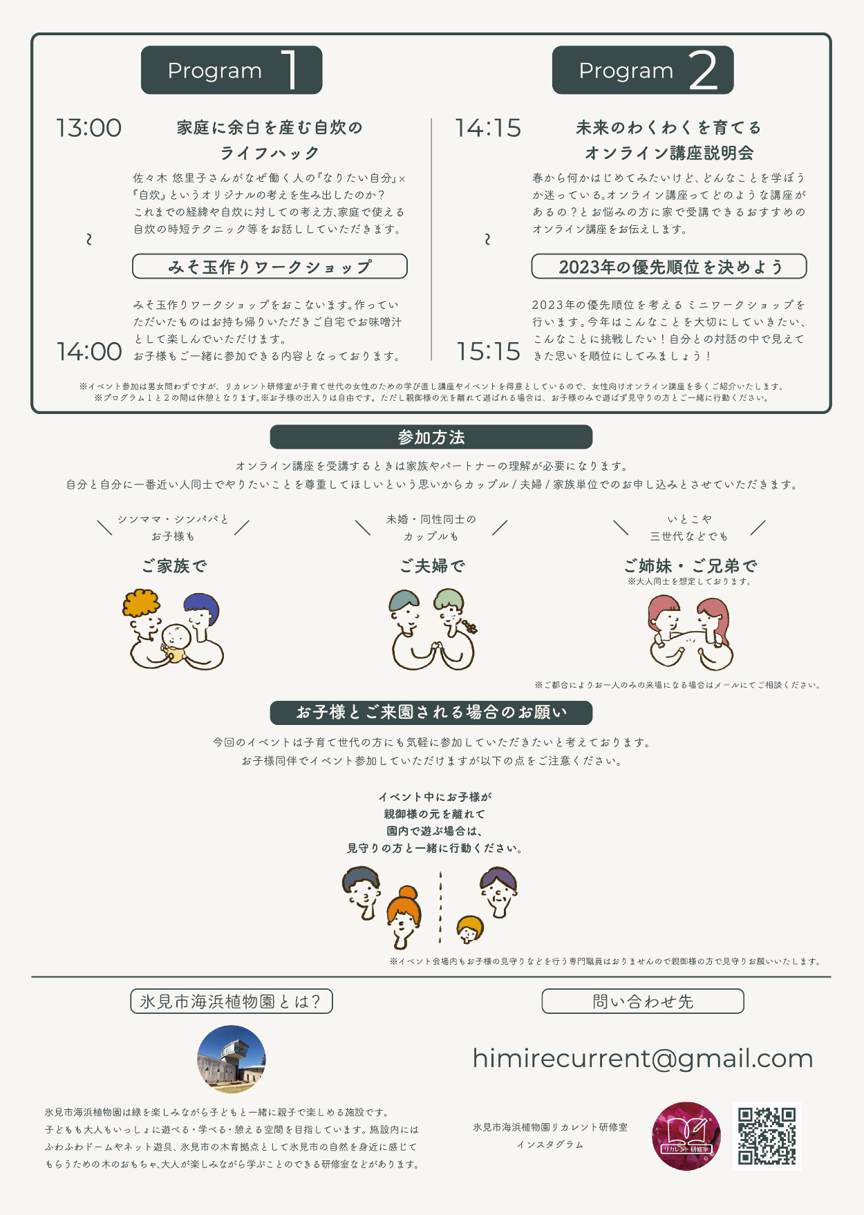 氷見市海浜植物園リカレント研修室では大人の学び直しであるリカレント教育を普及するためのイベントを行なっています。私は2020年4月から2023年3月末まで氷見市海浜植物園リカレント研修室にてリカレント教育講座のコーディネーターを行っていました。その中で企画したイベントとなります。