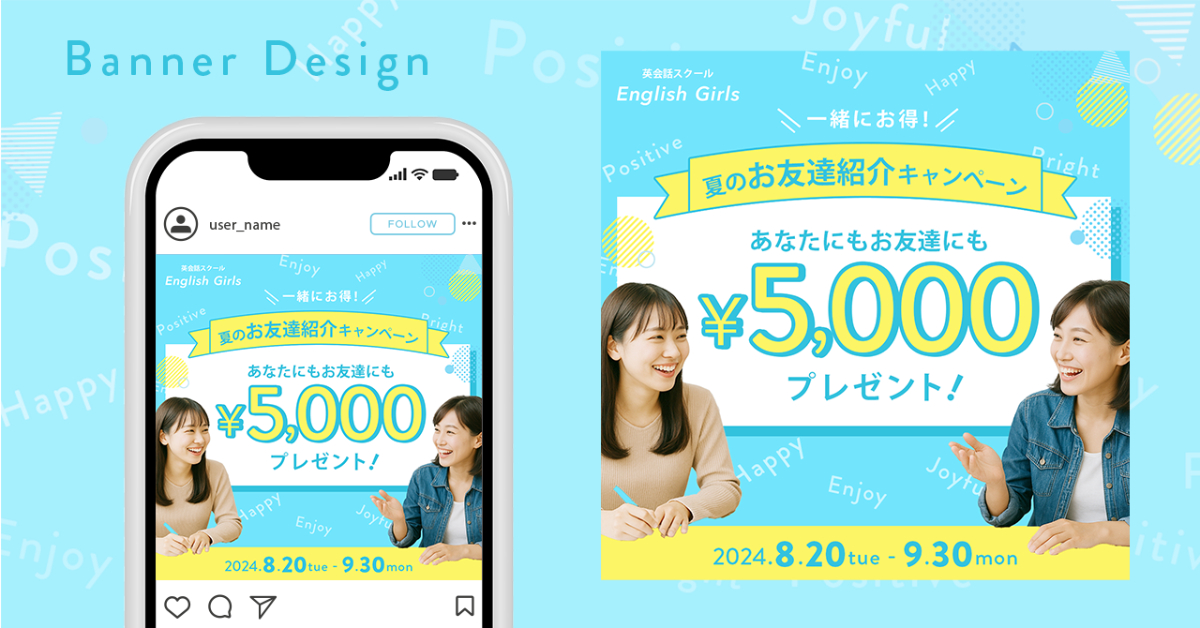 【バナー】架空英会話教室の友達紹介キャンペーンバナー