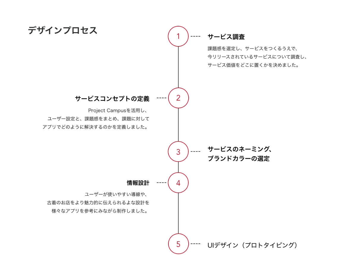 中間課題として古着屋のアプリを制作しました。 ブランディング(サービス名・色合いなど)からUIデザインまで、すべて担当しました。