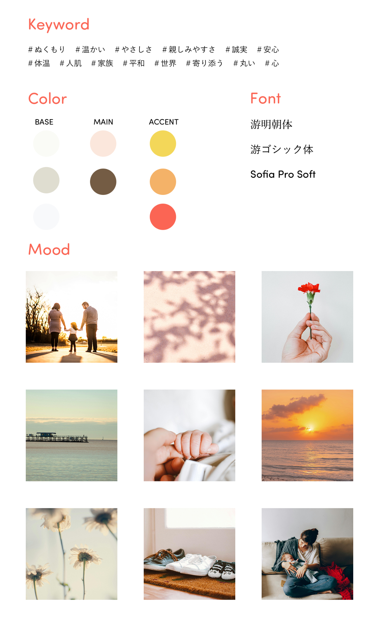 TSUTSUMU株式会社の理念やメッセージ、情報設計した内容からムードボードを作成。