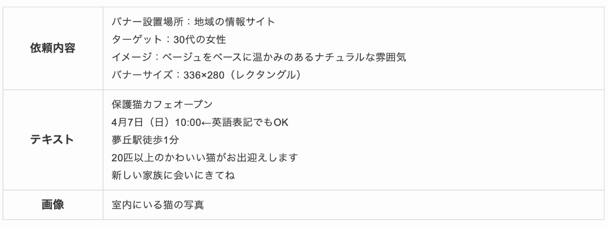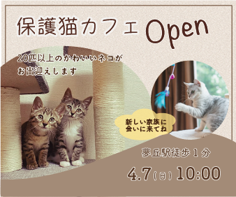 保護猫カフェのオープン告知をお題として架空のバナーを作成しました。