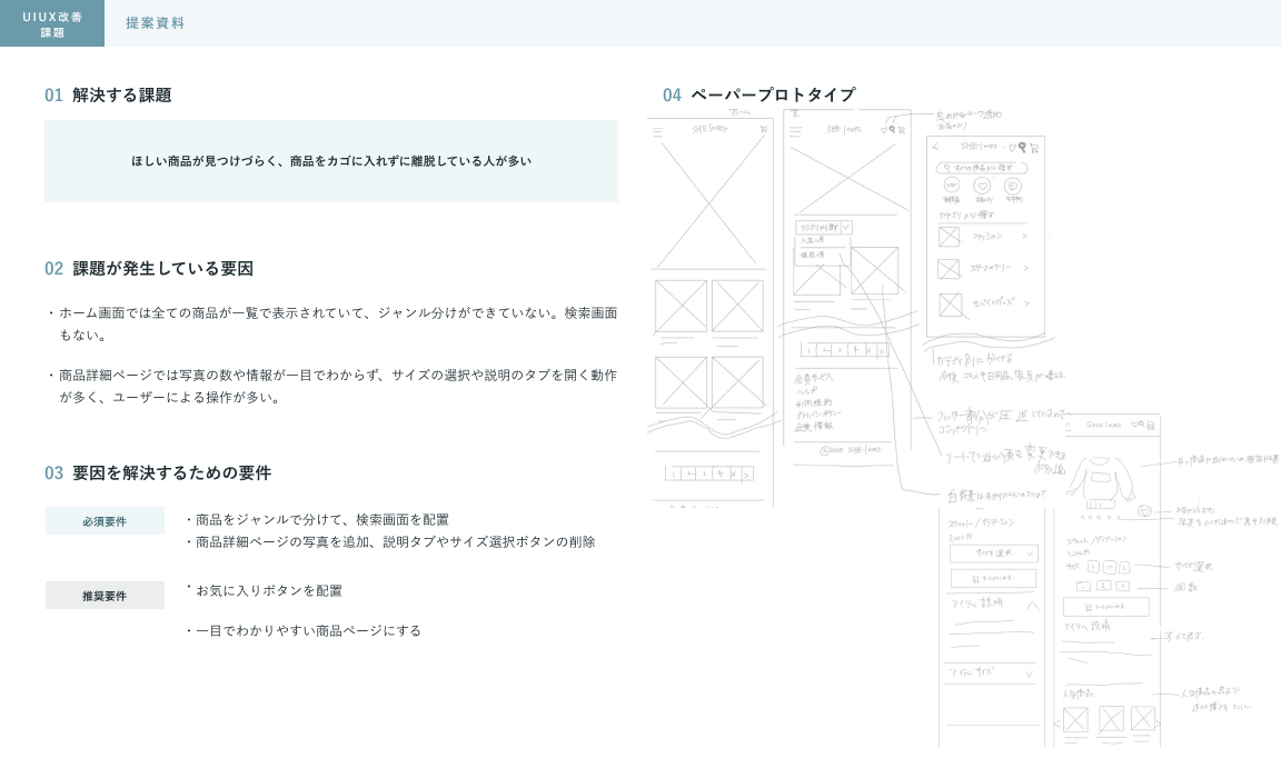 -解決する課題:ほしい商品が見つけづらく、商品をカゴに入れずに離脱している人が多い