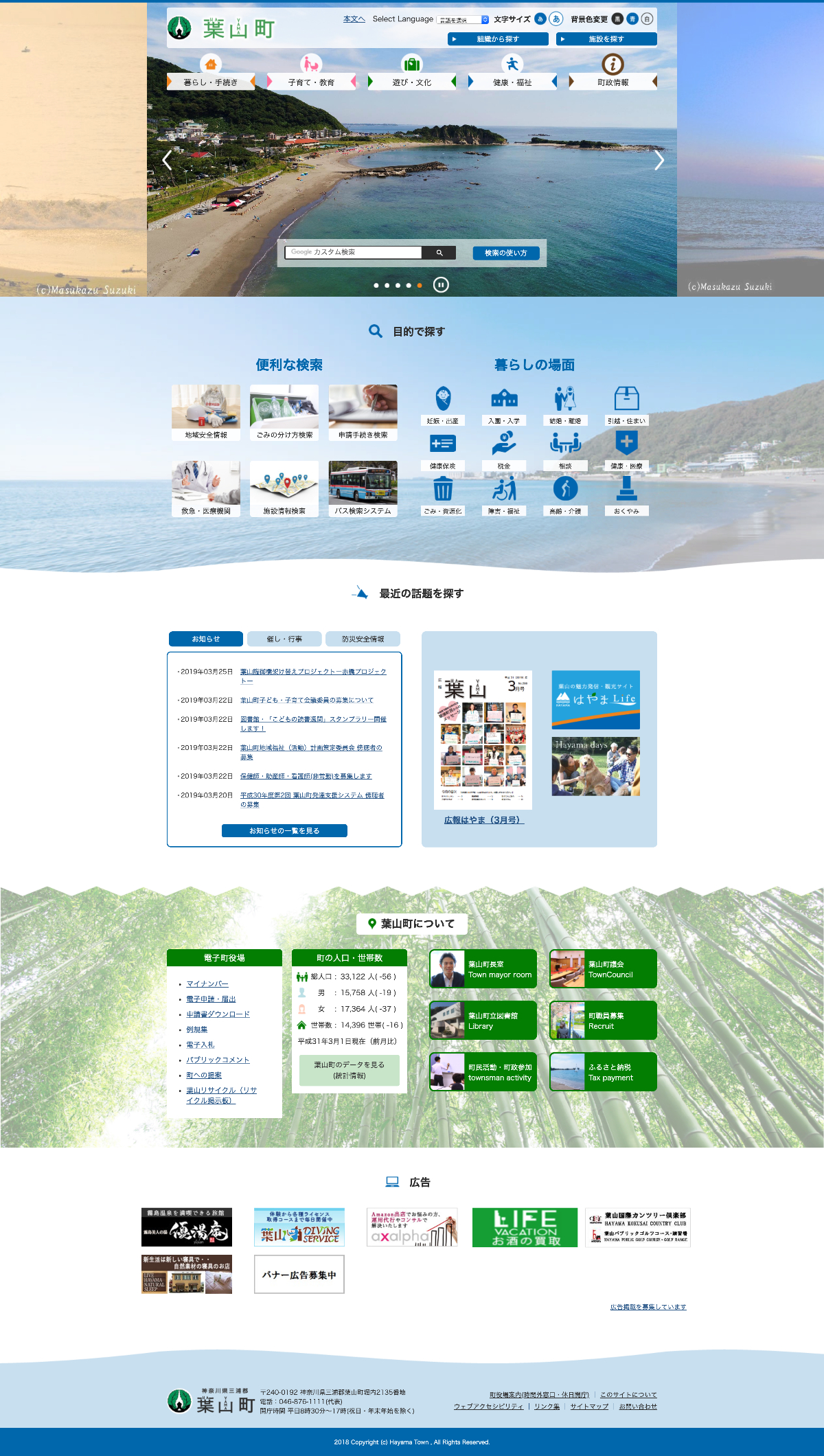 葉山町のHPのリニューアルと合わせて、CMSを導入した。 プロジェクト期間は2017年6月〜2018年1月。 特設サイト数は1。