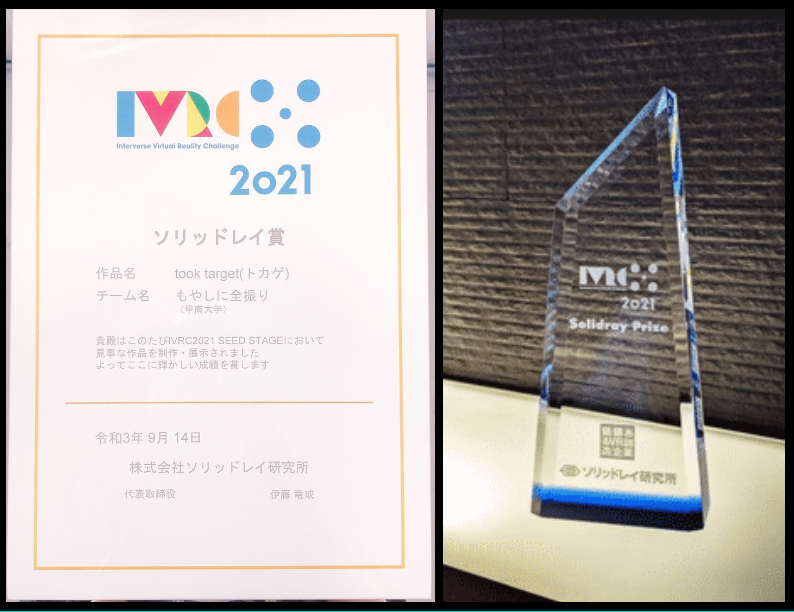 学生を中心としたチームでインタラクティブ作品を企画・制作するコンテストで 企業賞を受賞しました。 unityを使用したVR作品をチームで制作しました。