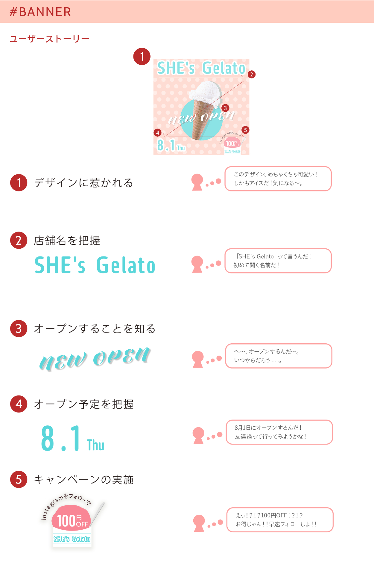 ・認知度向上:この夏新規開店の「SHE's Gelato」の存在を知ってもらう