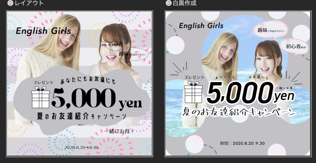 ⚫︎クライアント名:English Girls(20代女性をメイン顧客とするライトな英会話教室)