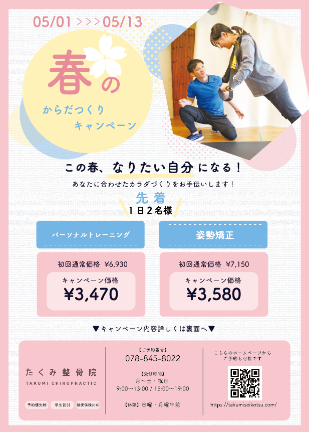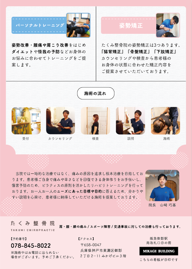 ターゲット:20-30代、女性、日頃運動していない/整骨院に通ったことがない/阪急沿線周囲に在住/徒歩でこれる範囲/ダイエットや身体づくりに興味がある/変化したい