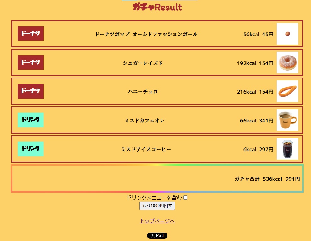 Java,サーブレット,html,MySQLの勉強と実習のため、それぞれを使うものを考えた結果。サイゼリヤ1000円ガチャから着想を得て作成。