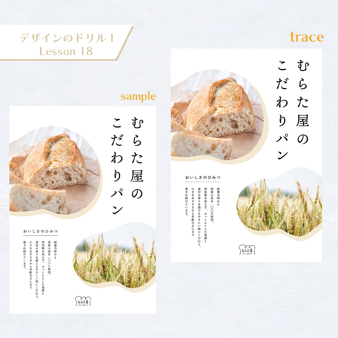 ・カーブのシェイプで写真をくりぬき、柔らかい印象にしている。