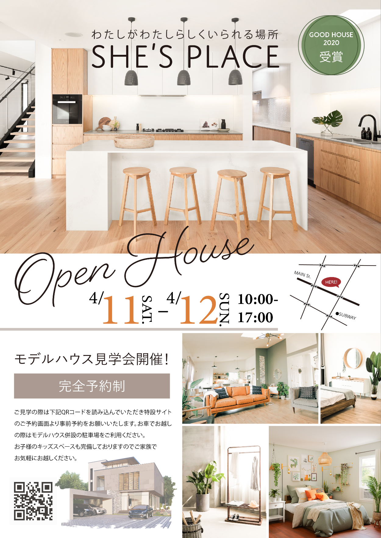 ・OPEN HOUSEや日付はすぐに情報として入るように中央に配置し、