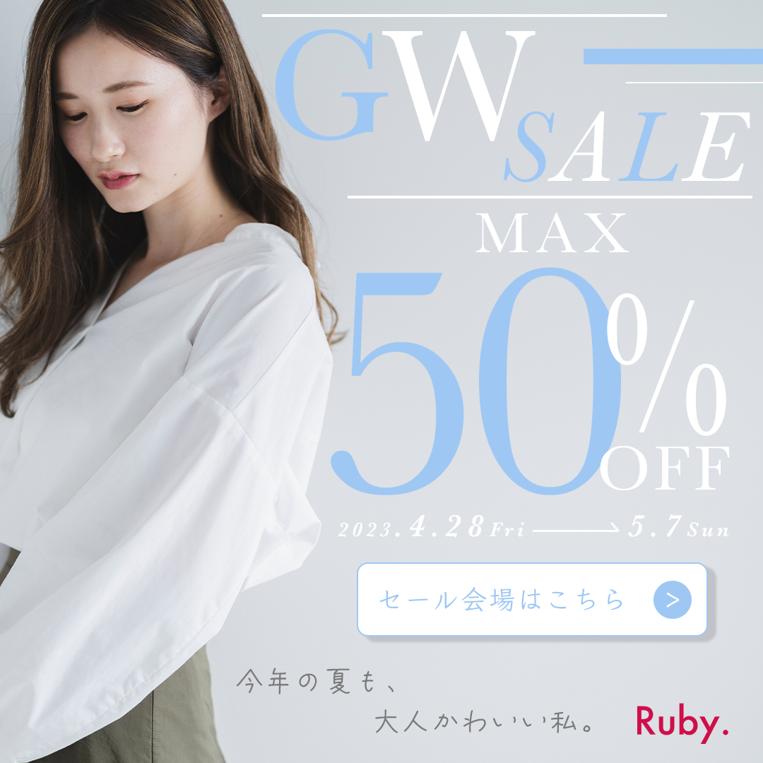 上から順番に、GW SALE→MAX 50%OFF→セール期間→ボタン→キャッチコピー→ロゴといった流れで見えるように各要素を配置しました。Instagram広告バナーということで、数秒間でいかに全ての情報を見てもらえるかが勝負と考えております。その為、MAX 50%OFFが一番目立つようにデザインをしました。