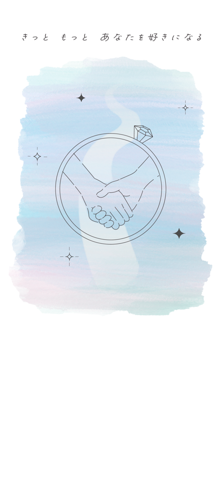 - 「理想の指輪に出会える予感がする雰囲気」を感じられるように、今までとこれからの思いを描くような色合いをカラーコードを参考にデザインし、Procreateのアプリで背景のイラストを作成しました。透き通る道は「きっともっとあなたを好きになる」のイメージに繋がるような形にしました。指輪に囲まれる2人の手のイラストも自作で、性別を問わず親しみを持てるようなシンプルなあしらいにしました。手書きフォントを使用することで親近感を持たせ、全体的なカラーやあしらいも性別を意識せず、指輪への期待を持てるようなデザインに仕上げました。