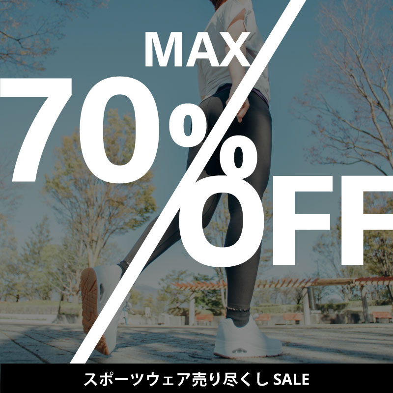 スポーツウェア売り尽くしSALEのバナー m OVERVIEW 「MAX70%OFF」を大きく配置し、一目でセールバナーだと認識してもらえるよう作成しました。 サイズ:W800×H800px使用ツール:Illustrator,Photoshop制作時間:1時間