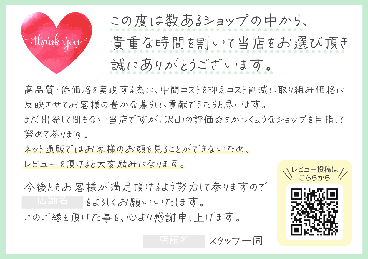 ECサイトで使用する同梱用のチラシを制作