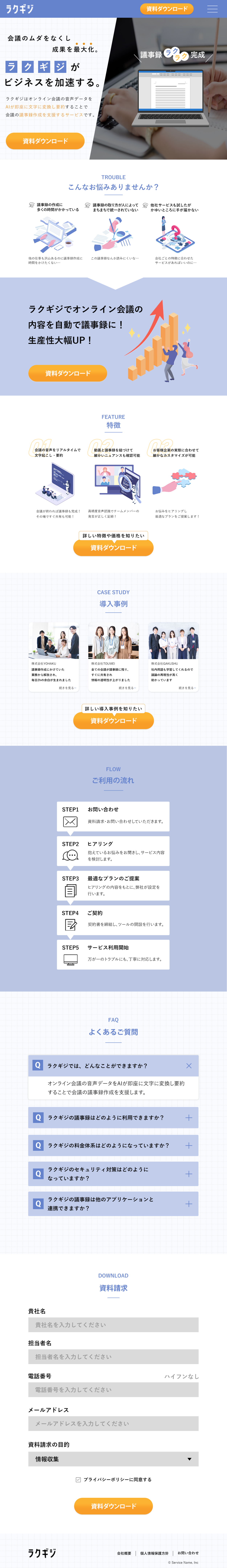・サービスの特徴やメリットを伝え、サービスに関心を持ってもらい詳細資料をダウンロードしてもらう
