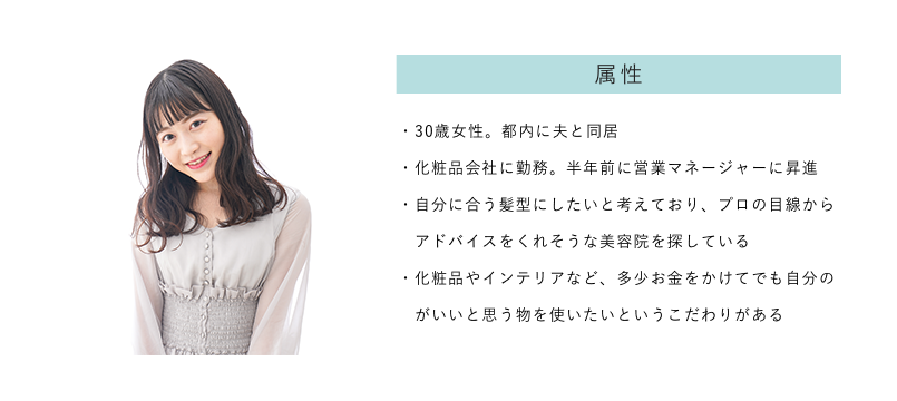 ・流行りのスタイルを提案するのではなく、お客さまに似合う髪型を提案することを重視している美容院なので、「確かな腕のスタイリストに担当してもらいたい」というニーズがある方をペルソナとして設定しました。